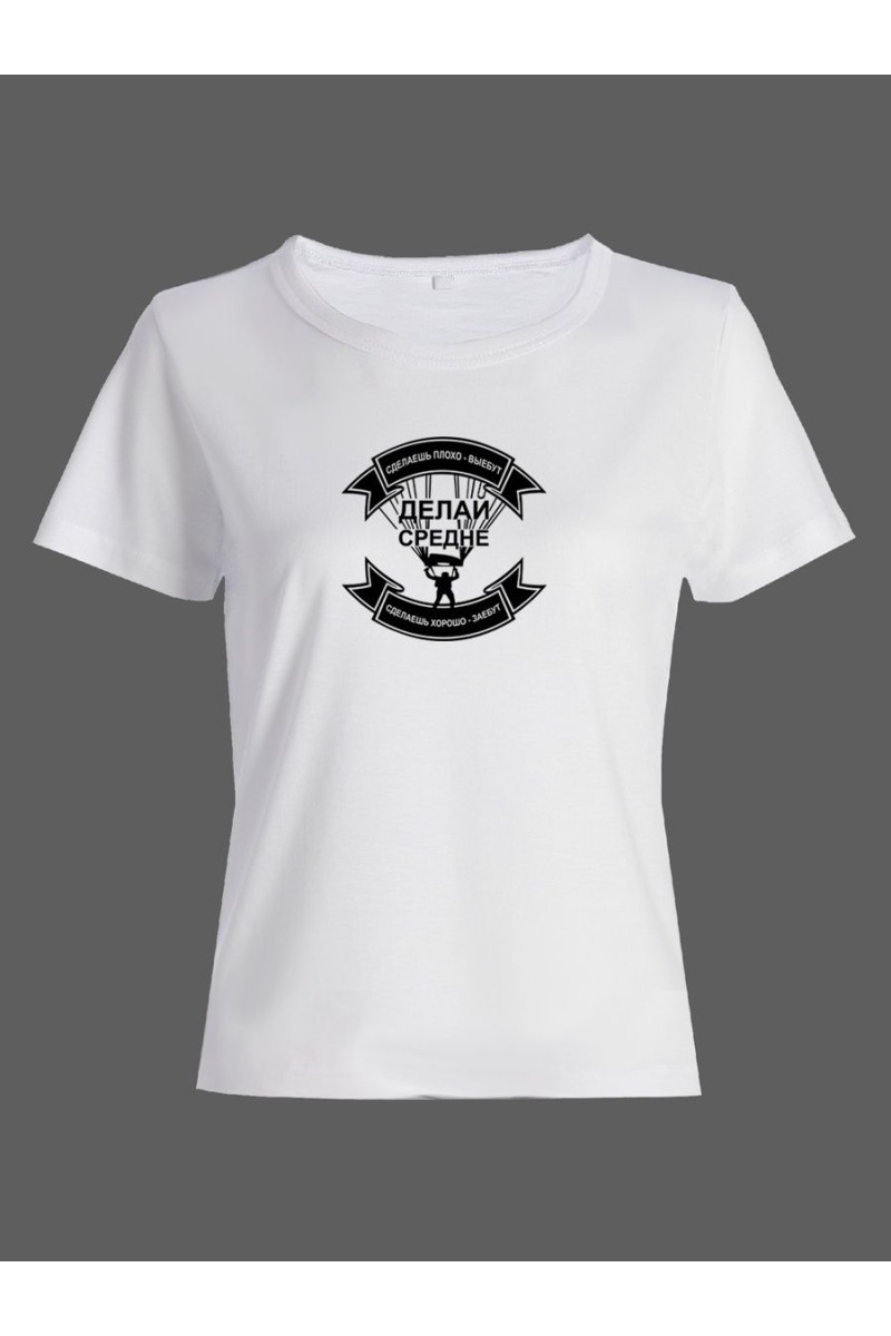 Футболка для женщины с забавным текстом "Делай средне". Настало время шоппинг-террапии. Такая покупка способна поднять даже самое плохое настроение. В большой компании у вас велик шанс, что вы привлечете к себе внимание. Смешные футболки определенно им понравятся. Не забудьте рассказать дорогим друзьям, где вы раздобыли такое сокровище. Чем отличаются женские футболки от мужских? Они приталенные, а вырез увеличен. Одежда натуральна, 100% хлопок. Порадуйте такой футболкой лучшую подругу или сестру. Можете приобрести одинаковые - станьте роднее, почувствуйте себя близнецами, которых некоторые так любят одевать одинаково. Чтобы футболка подарила вам заряд счастья, выберите правильный размер. В нашем магазине футболки идут размер в размер. На сайте имеется таблица размеров. Уточните размер, ведь маленькая футболка вам точно не нужна, купите свободную. Пусть будет на размер больше, а не меньше.