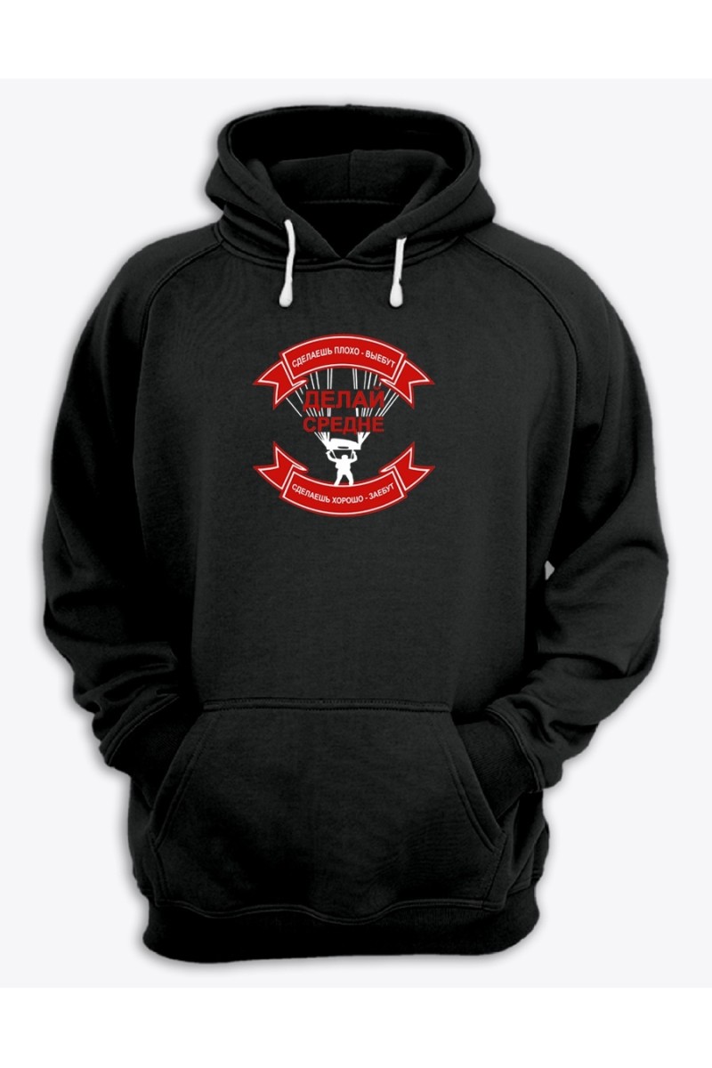 Худи для представительницы женского пола с забавным принтом "Делай средне". Свитшот и худи - одно и то же? Нет, от свитшота этот тип одежды отличает наличие капюшона и скрытые карманы, которые находятся сбоку. Удобная, теплая одежда для прохладных летних вечеров. Наш сайт поможет вам найти худи своей мечты. Также худи может стать оригинальным подарком для кого-то из ваших близких. Состав: 100% хлопок. Кофты с длинными руками не только клевые, но еще изготовлены из экологически чистого материала. Говорим сразу, что худи идут размер в размер. Идеально, если вы знаете размер, но есть такие случаи, что размер узнать нельзя. Например, когда планируете эту кофту подарить, а сюрприз не хочется испортить. Не переживайте, просто возьмите свободное худи. Это комфортно для получателя, а для вас безопасно - вы не будете постоянно думать: подойдет или нет? Стильные люди предпочитают стильное худи.