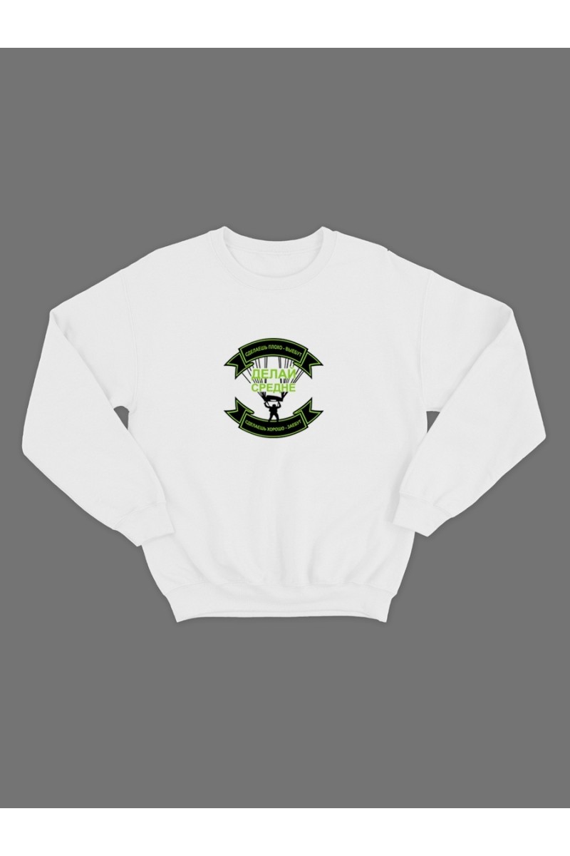 Свитшот с классным принтом"Делай средне". Порадуйте себя новой толстовкой без капюшона. Это один из простых способов выделиться из толпы. В нашем магазине огромный выбор свитшотов с прикольными принтами и надписями. Вы по-любому найдете для себя что-то интересное. Оригинальный свитшот с клевым принтом - это то, что вам нужно. Новая покупка здорово поднимает настроение. Особенно, если это свитшоты с принтами из нашего магазина. Состав: 100% хлопок. Не только красиво, но еще и не вредит здоровью: ткань из хлопка не вызывает аллергическую реакцию и пропускает воздух, что позволяет телу дышать. Однако, прежде чем добавлять в корзину, убедитесь, что выбрали свой размер. На сайте указаны размеры для женских свитшотов, мужские - больше на 1-2 размера. Если все-равно переживаете из-за размера, то лучше приобретите на размер больше. Свободный свитшот - это так круто.