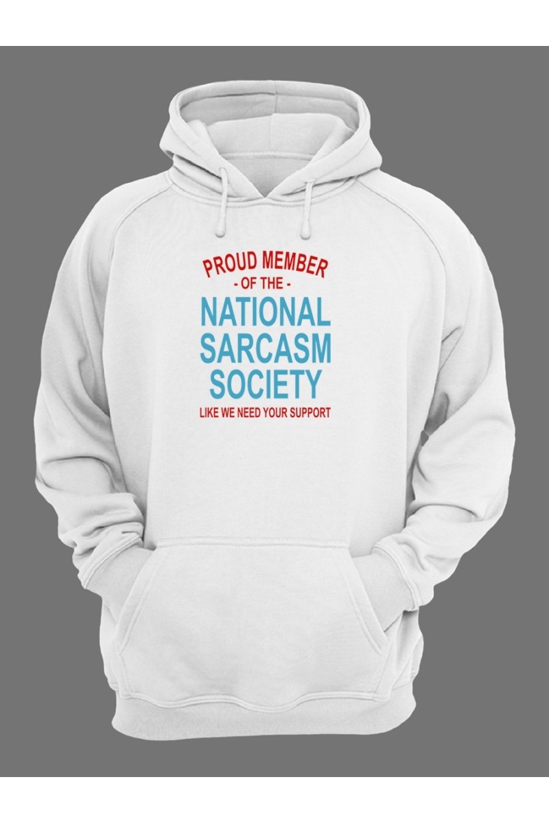 Смешная худи с классным принтом "Nation sarcasm society". В наше время быть таким как все скучно. Даже одежда может выделить вас среди окружающей толпы. Худи из нашего магазина привлекут внимание, ведь они не простые, а со смешными надписями и клевыми принтами. Стильные худи хотят все. Покупайте себе, дарите друзьями, радуйте близких. У нас есть все и для всех. Найдете и для сына, и для отца, и про себя не забудьте. А в разделе женских худи вы найдете что-то и для представительниц прекрасного пола. Это весьма полезный подарок, который к тому же будет напоминать о вас. Ткань худи - чистый хлопок, 100%. Хлопковая ткань самая лучшая. Носить такое худи - это одно сплошное удовольствие. Вы главное не промахнитесь з размером. На сайте указаны женские размеры, а мужские - на 1-2 размера больше. Покупайте худи с запасом в размере - так надежнее. Свободные кофты с длинными рукавами такие потрясные.