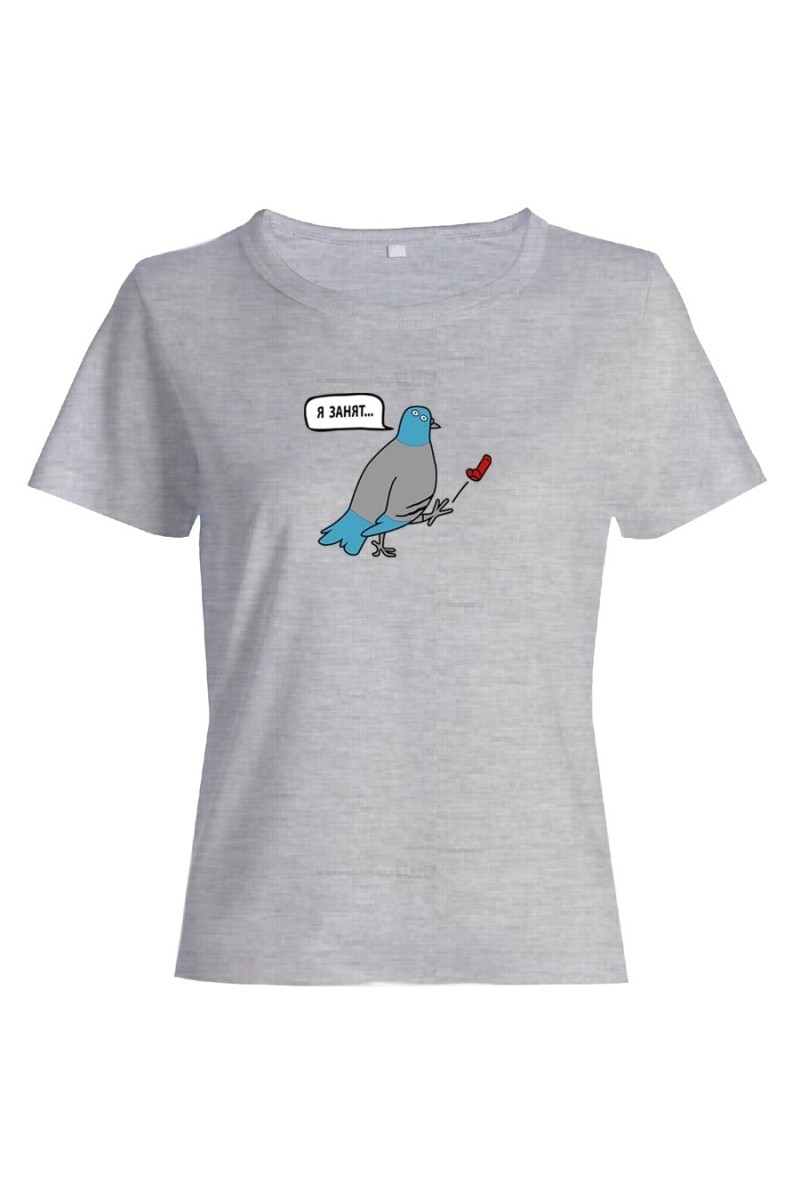 Футболка для женщины с забавным текстом "Я занят". Настало время шоппинг-террапии. Такая покупка способна поднять даже самое плохое настроение. В большой компании у вас велик шанс, что вы привлечете к себе внимание. Смешные футболки определенно им понравятся. Не забудьте рассказать дорогим друзьям, где вы раздобыли такое сокровище. Чем отличаются женские футболки от мужских? Они приталенные, а вырез увеличен. Одежда натуральна, 100% хлопок. Порадуйте такой футболкой лучшую подругу или сестру. Можете приобрести одинаковые - станьте роднее, почувствуйте себя близнецами, которых некоторые так любят одевать одинаково. Чтобы футболка подарила вам заряд счастья, выберите правильный размер. В нашем магазине футболки идут размер в размер. На сайте имеется таблица размеров. Уточните размер, ведь маленькая футболка вам точно не нужна, купите свободную. Пусть будет на размер больше, а не меньше.