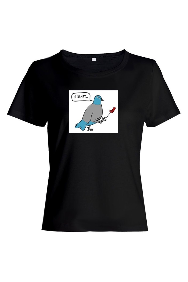 Футболка для женщины с забавным текстом "Я занят". Настало время шоппинг-террапии. Такая покупка способна поднять даже самое плохое настроение. В большой компании у вас велик шанс, что вы привлечете к себе внимание. Смешные футболки определенно им понравятся. Не забудьте рассказать дорогим друзьям, где вы раздобыли такое сокровище. Чем отличаются женские футболки от мужских? Они приталенные, а вырез увеличен. Одежда натуральна, 100% хлопок. Порадуйте такой футболкой лучшую подругу или сестру. Можете приобрести одинаковые - станьте роднее, почувствуйте себя близнецами, которых некоторые так любят одевать одинаково. Чтобы футболка подарила вам заряд счастья, выберите правильный размер. В нашем магазине футболки идут размер в размер. На сайте имеется таблица размеров. Уточните размер, ведь маленькая футболка вам точно не нужна, купите свободную. Пусть будет на размер больше, а не меньше.