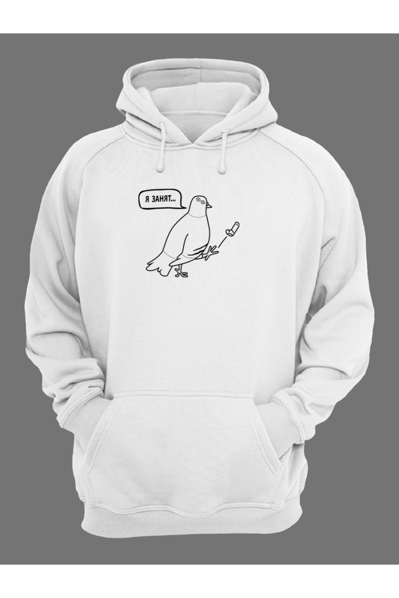 Смешная худи с классным принтом "Я занят". В наше время быть таким как все скучно. Даже одежда может выделить вас среди окружающей толпы. Худи из нашего магазина привлекут внимание, ведь они не простые, а со смешными надписями и клевыми принтами. Стильные худи хотят все. Покупайте себе, дарите друзьями, радуйте близких. У нас есть все и для всех. Найдете и для сына, и для отца, и про себя не забудьте. А в разделе женских худи вы найдете что-то и для представительниц прекрасного пола. Это весьма полезный подарок, который к тому же будет напоминать о вас. Ткань худи - чистый хлопок, 100%. Хлопковая ткань самая лучшая. Носить такое худи - это одно сплошное удовольствие. Вы главное не промахнитесь з размером. На сайте указаны женские размеры, а мужские - на 1-2 размера больше. Покупайте худи с запасом в размере - так надежнее. Свободные кофты с длинными рукавами такие потрясные.