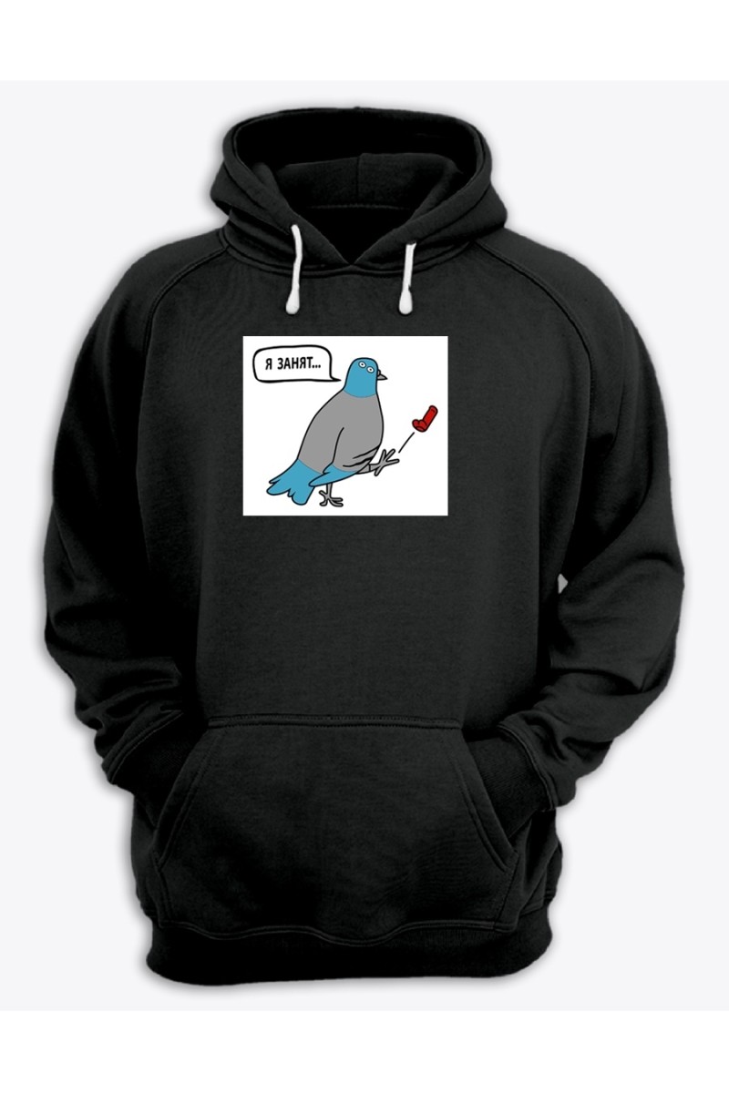 Смешная худи с классным принтом "Я занят". В наше время быть таким как все скучно. Даже одежда может выделить вас среди окружающей толпы. Худи из нашего магазина привлекут внимание, ведь они не простые, а со смешными надписями и клевыми принтами. Стильные худи хотят все. Покупайте себе, дарите друзьями, радуйте близких. У нас есть все и для всех. Найдете и для сына, и для отца, и про себя не забудьте. А в разделе женских худи вы найдете что-то и для представительниц прекрасного пола. Это весьма полезный подарок, который к тому же будет напоминать о вас. Ткань худи - чистый хлопок, 100%. Хлопковая ткань самая лучшая. Носить такое худи - это одно сплошное удовольствие. Вы главное не промахнитесь з размером. На сайте указаны женские размеры, а мужские - на 1-2 размера больше. Покупайте худи с запасом в размере - так надежнее. Свободные кофты с длинными рукавами такие потрясные.