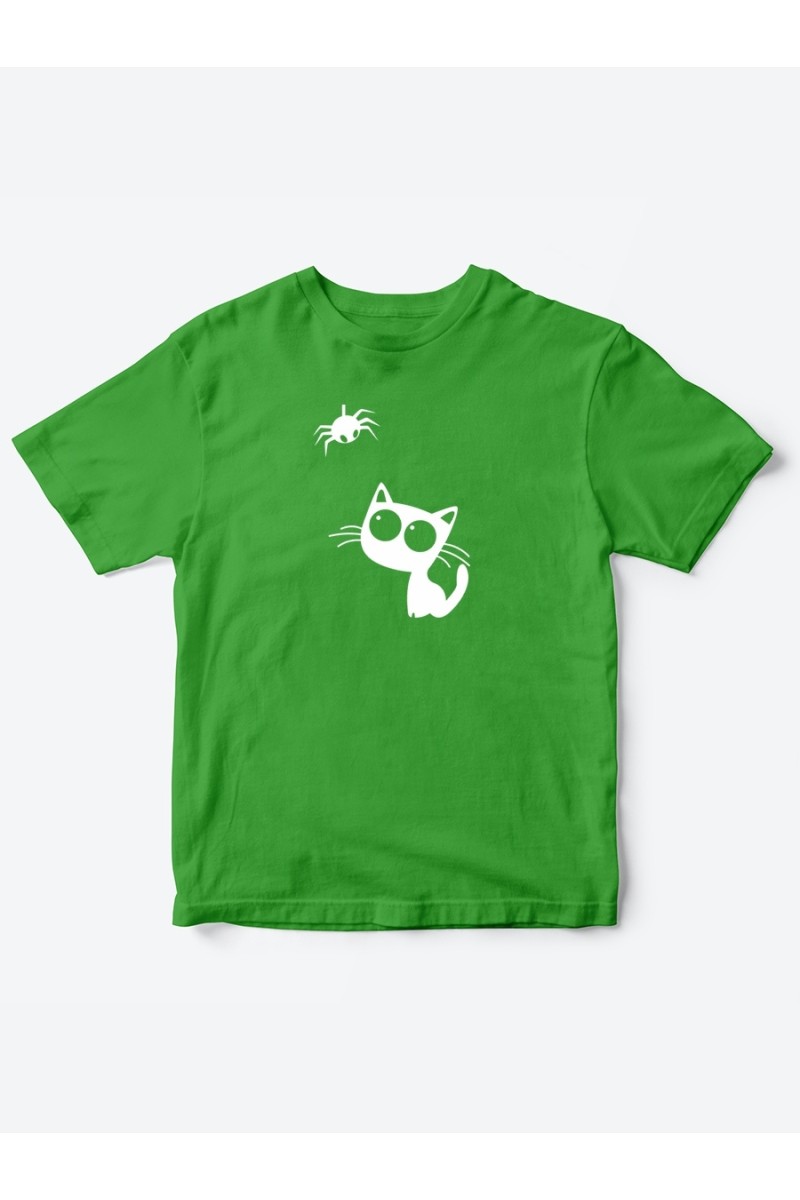 Футболки для ваших детей "Котенок и паучок". Какая же мама не любит наряжать своего ребенка? Да наверное нет таких. Всегда хочется прикупить что-то новое и красивое для любимой крошки. Наш магазин предоставляет вам огромный выбор детских футболок. Но зачастую "чистые" футболки не так уж интересны маленьким привередам. Именно поэтому мы предлагаем вам купить прикольные футболки со смешными надписями или принтами. Такая точно западет в самую душу. Ваше дитя будет носить ее с удовольствием, а его/ее друзья тоже захотят себе такую. Кто-то ведь должен задать темп моде в компании. Футболка с рисунком то, что нужно для вашего чада. Поговорим о размере. Дети так быстро растут, что не лишним будет перестраховаться - купить футболку на пару размеров побольше. Футболки идут от года и до 15 лет. Вы найдете что прикупить и для мальчика, и для девочки.