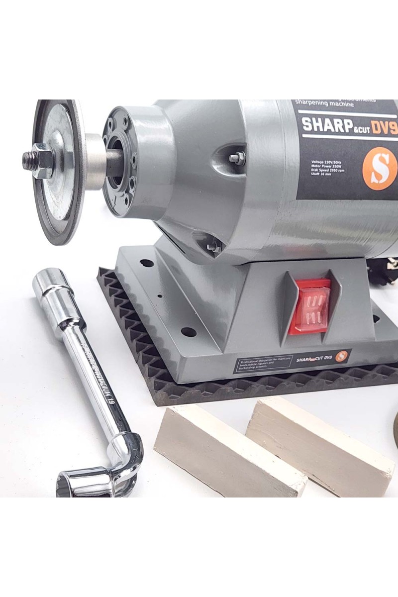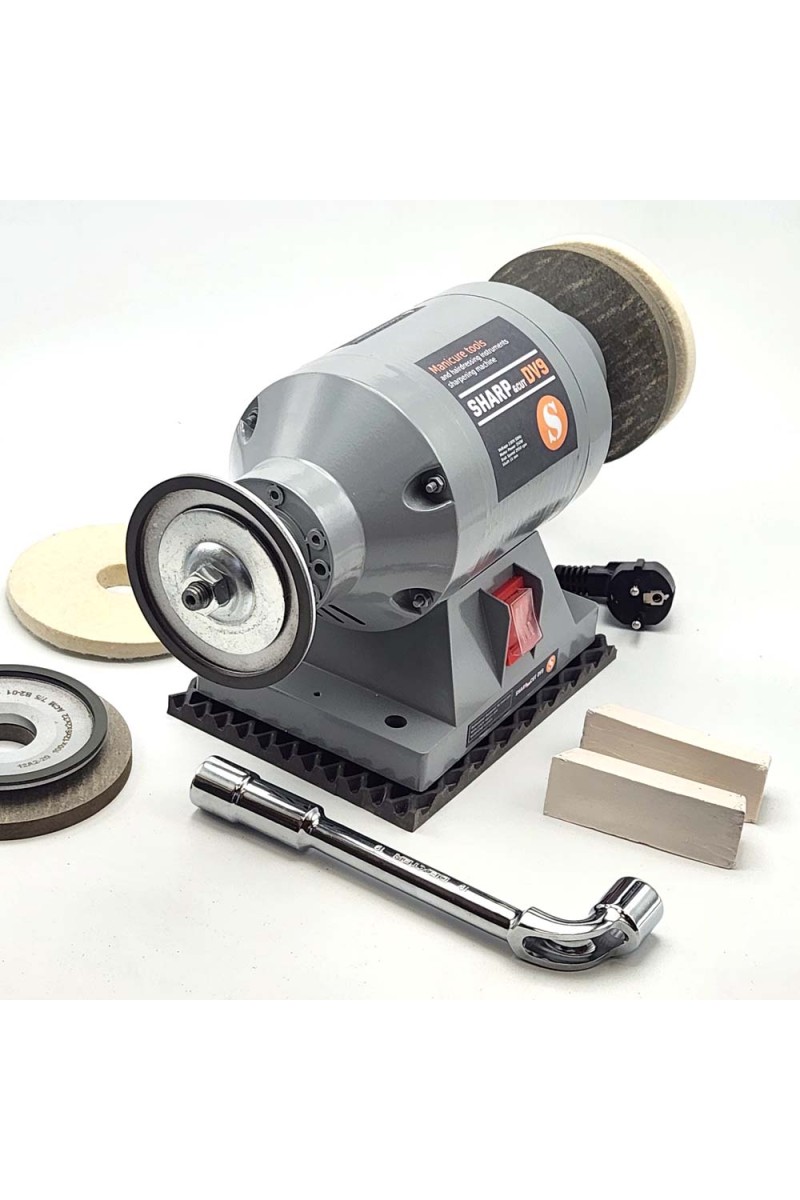 ✔ станок Sharp and Cut DV9 с установленными дисками: алмазный заточной диск, шлифовальный, полировальный диск