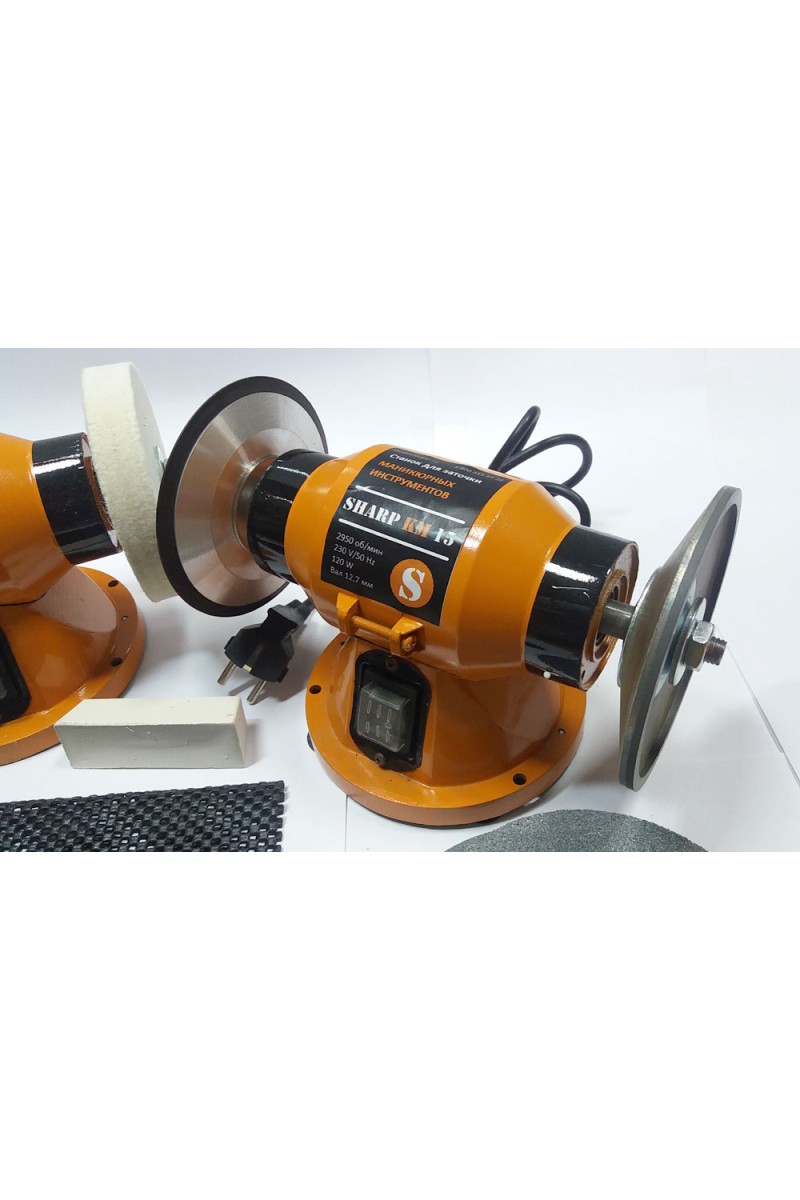 Станок имеет специализированные диски, предназначенные для высокоточной заточки маникюрных и парикмахерских инструментов.