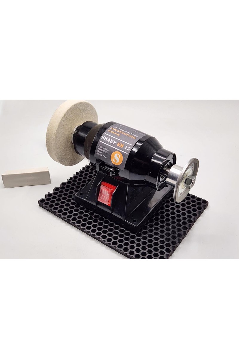 ✌ К основным плюсам, которыми обладает Sharp SM 15, можно отнести оптимальный размер. Второй плюс – прочные шлифовальные круги, поэтому замена им понадобится нескоро. Вот почему этот станок для заточки ножниц парикмахерских купить можно и в целях экономии на смене запчастей.