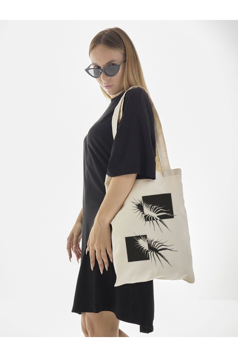 Сумка шоппер с принтом рисунком надписьюКарманы