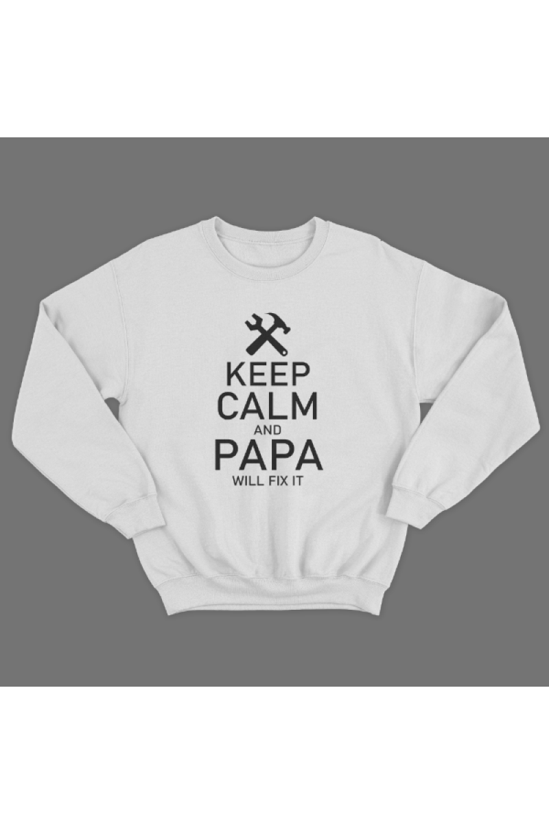 Свитшот в подарок для папы с принтом "Keep calm and papa will fix it" - "Сохраняй спокойствие и папа все починит"