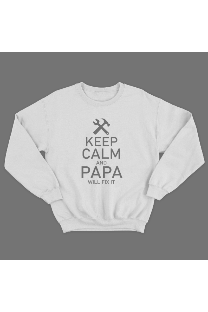 Свитшот в подарок для папы с принтом "Keep calm and papa will fix it"
