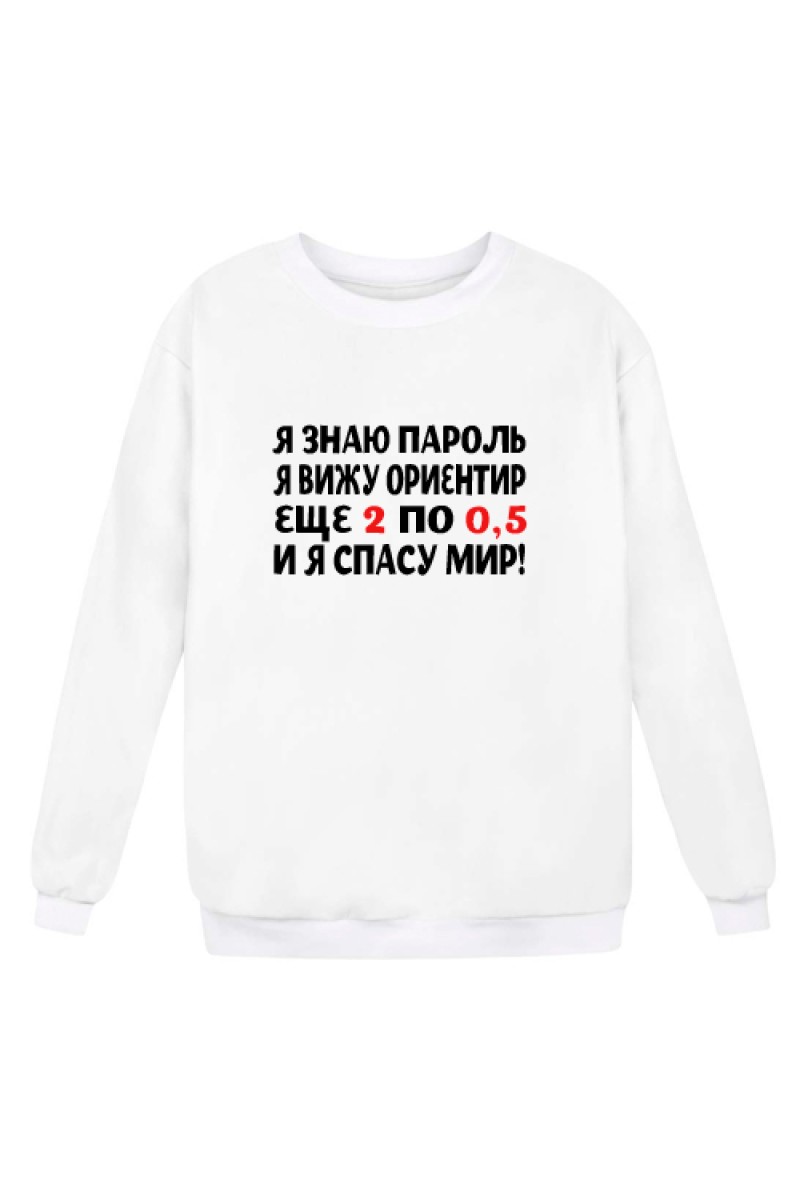 Прикольный свитшот "Я знаю пароль, я вижу ориентир, еще 2 по 0,5 и Я СПАСУ МИР"