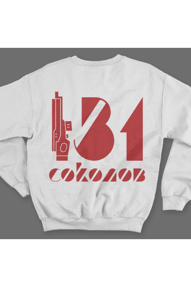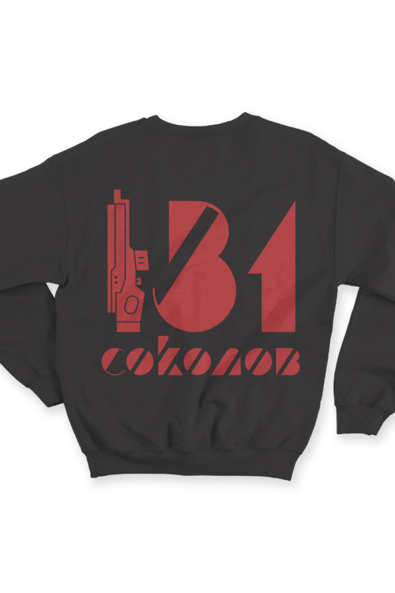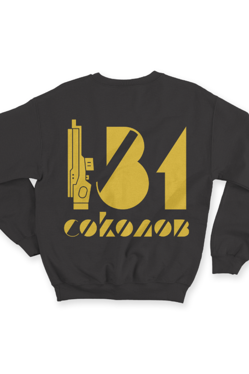Веселый именной свитшот с футуристичным шрифтом. Помимо надписи на свитшоте есть изображение лазерного ружья.