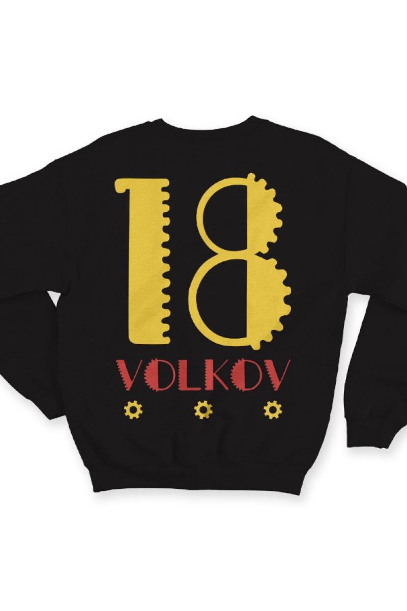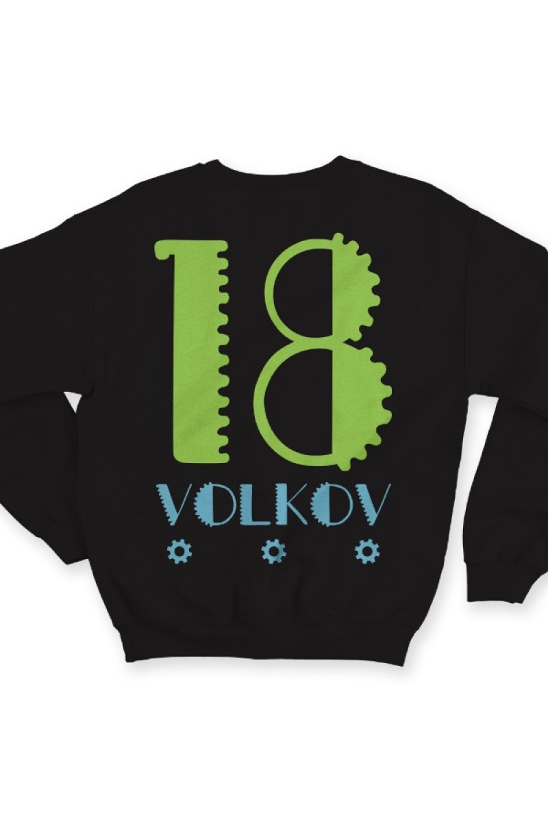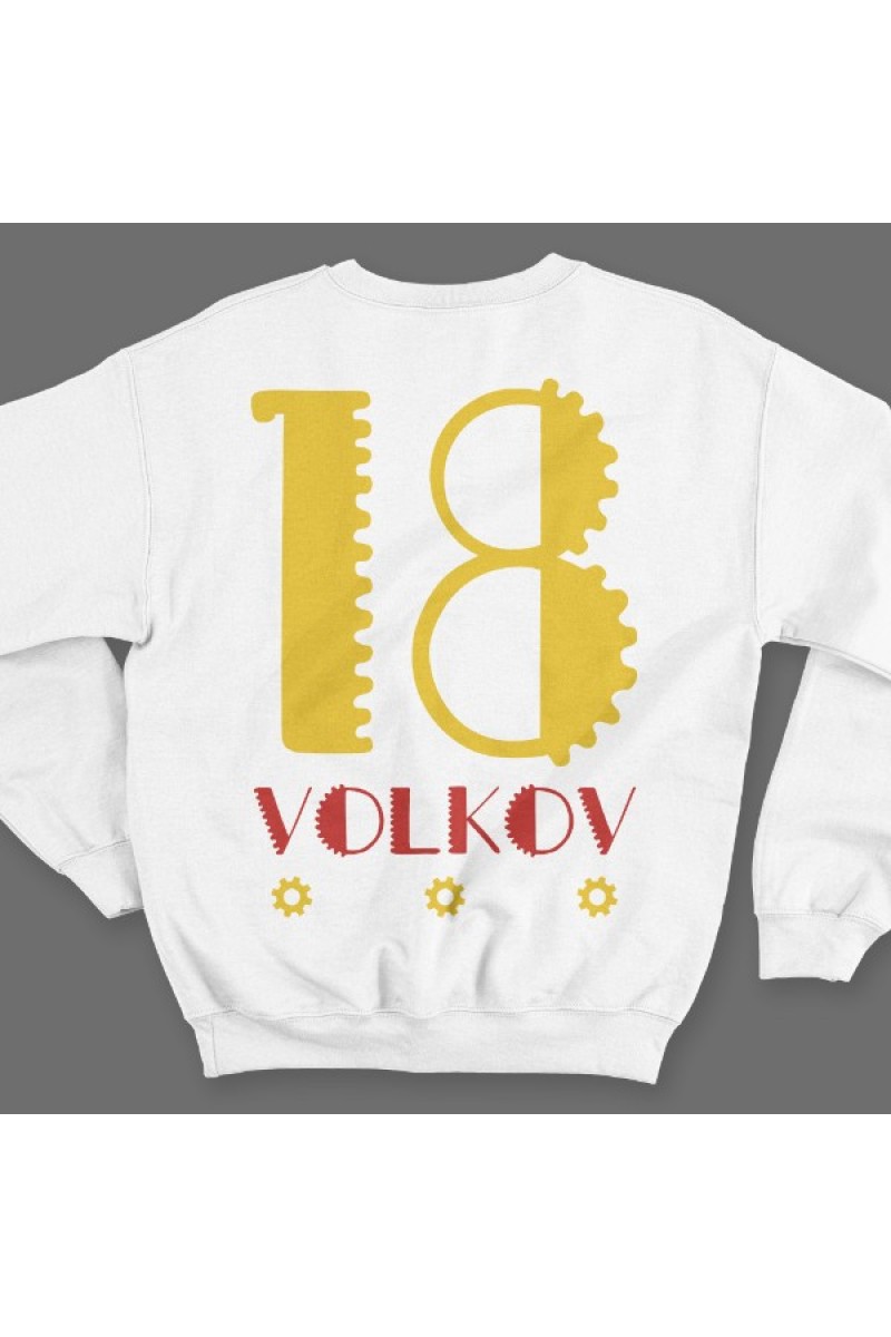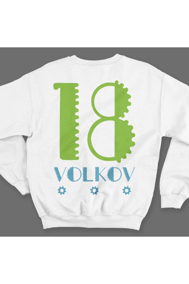 Веселый именной свитшот с механическим шрифтом. Помимо надписи на свитшоте есть изображение шестеренок.