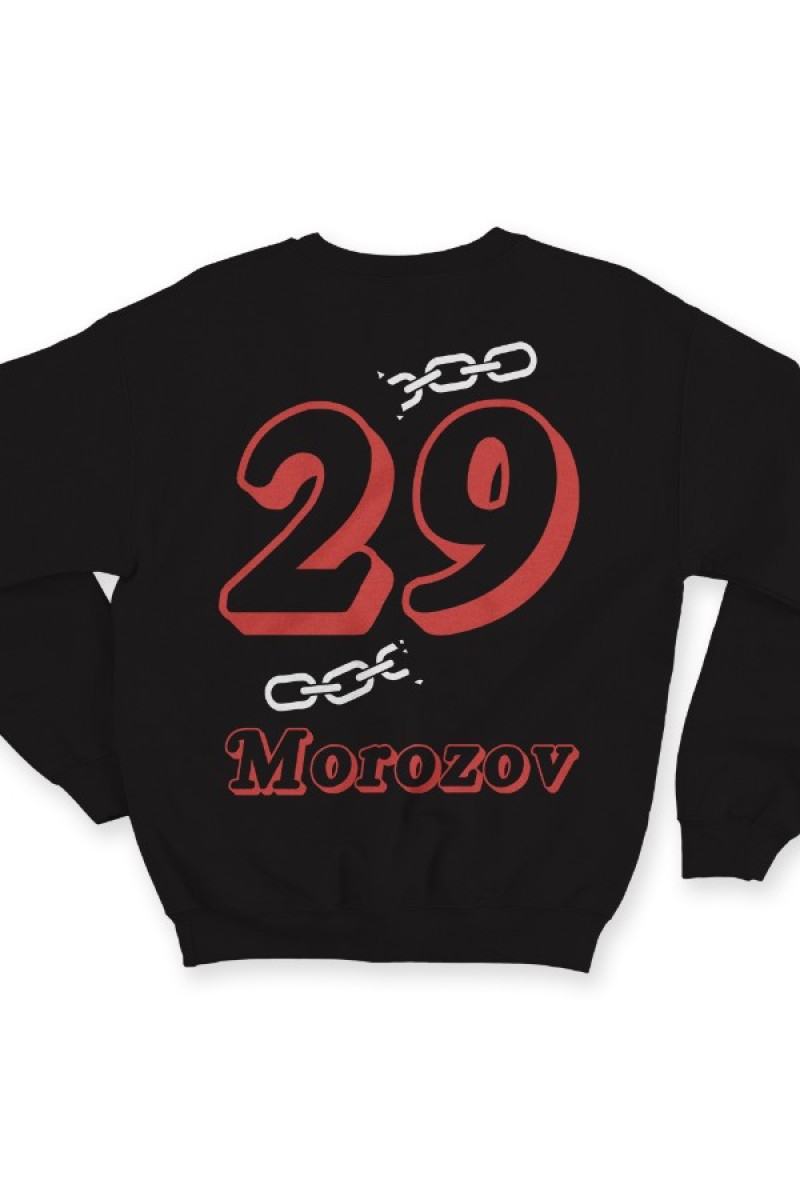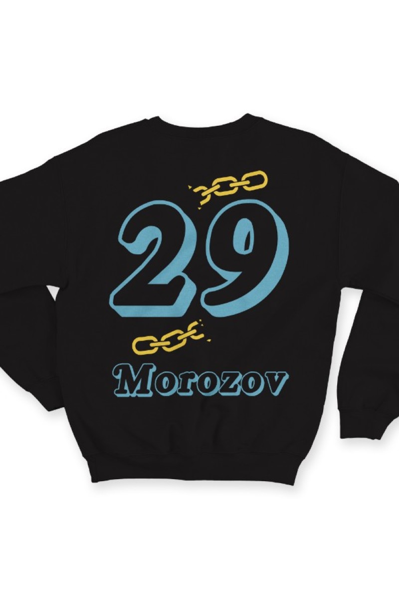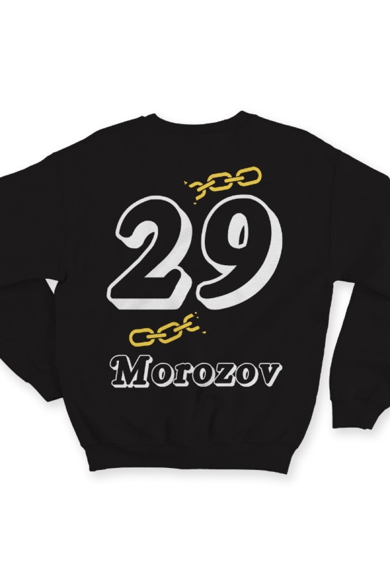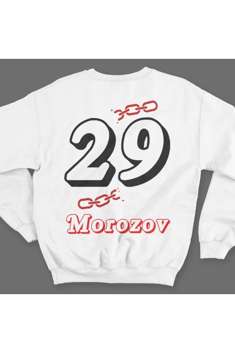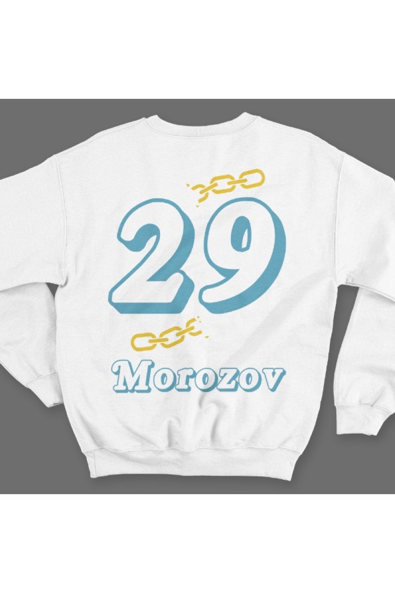 Веселый именной свитшот с объемным шрифтом. Помимо надписи на свитшоте есть изображение разорванной цепи.