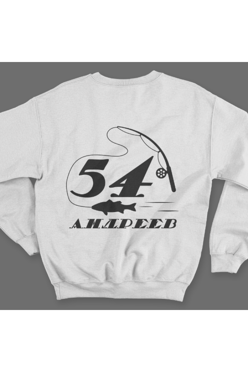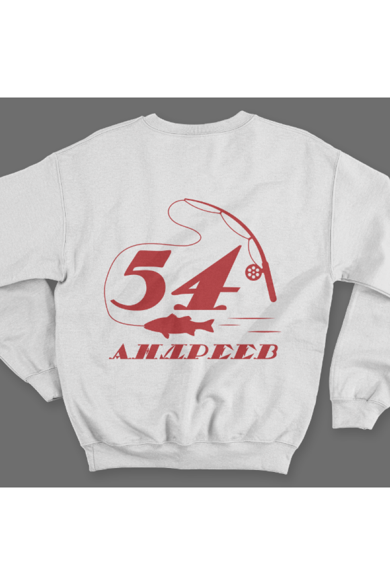 Именной свитшот с печатным шрифтом и атрибутами рыбалки #70