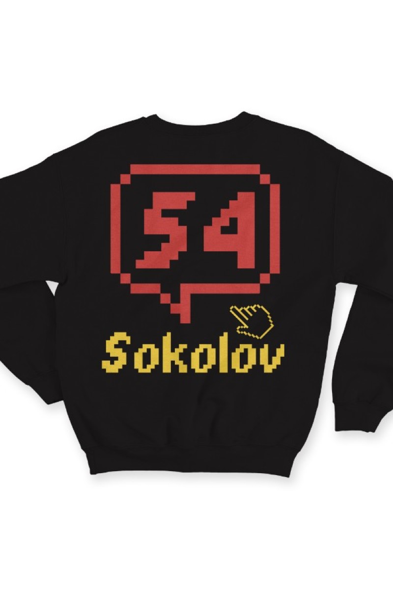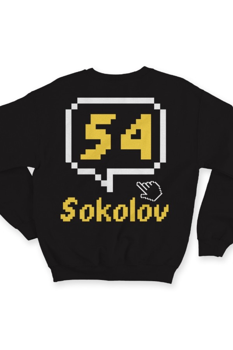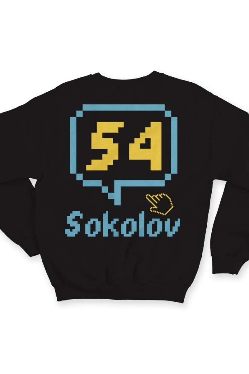 Веселый именной свитшот с пиксельным шрифтом. Помимо надписи на свитшоте есть изображение курсора.