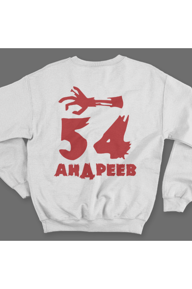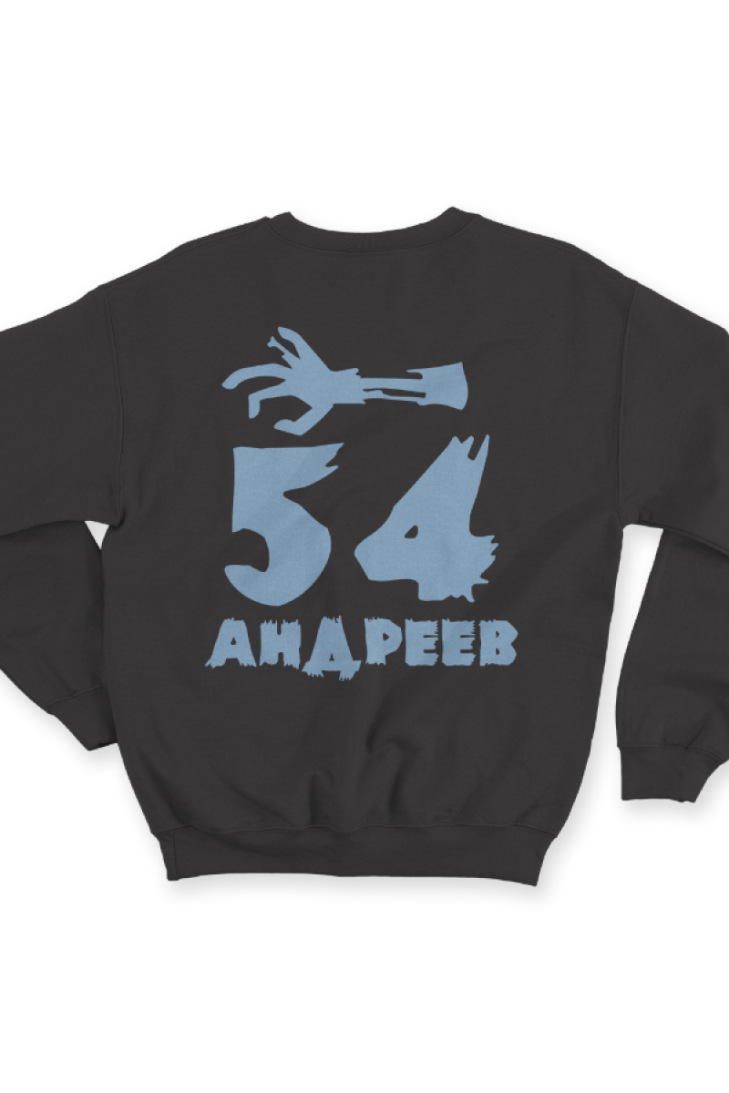 Веселый именной свитшот с рваным шрифтом. Помимо надписи на свитшоте есть изображение руки от зомби.