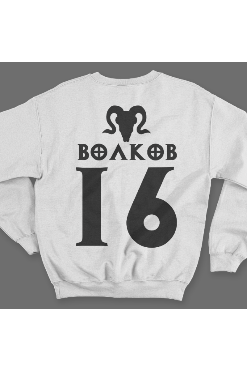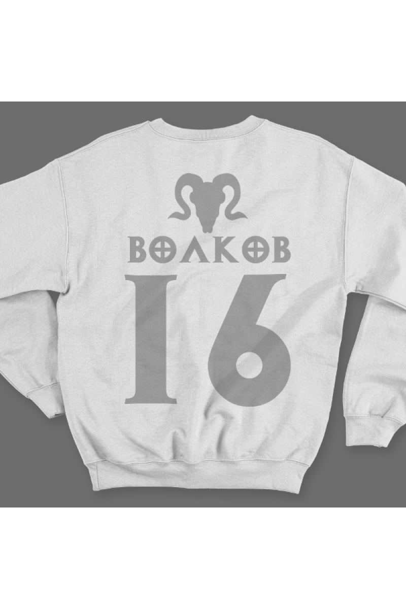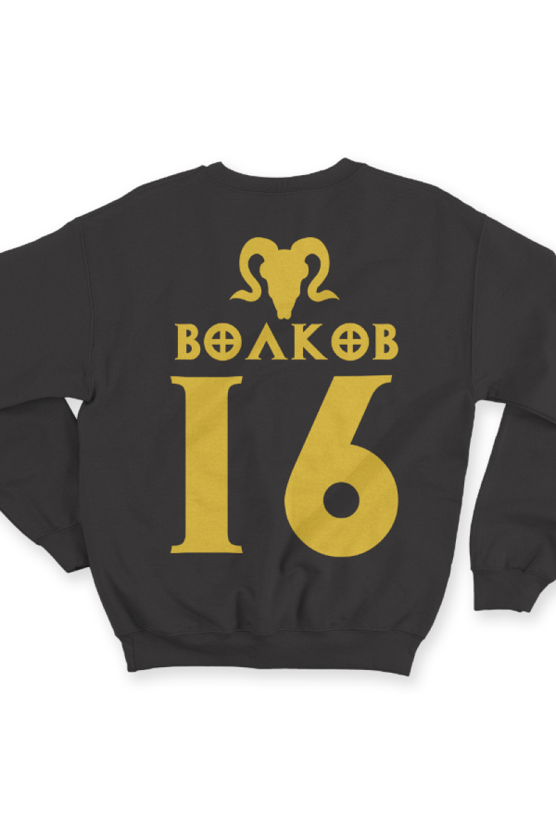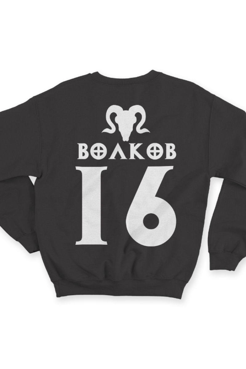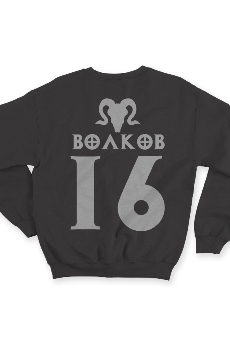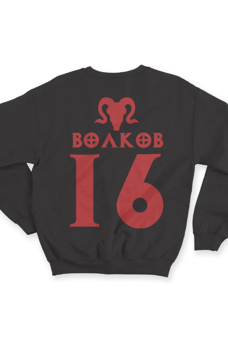 Веселый именной свитшот с шрифтом из игры Diablo. Помимо надписи на свитшоте есть изображение черепа козла.