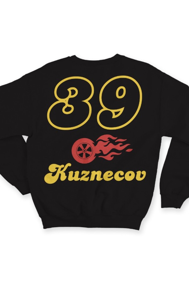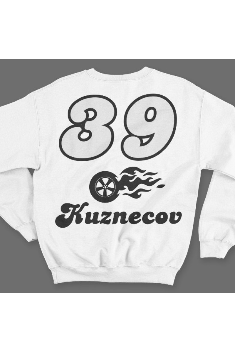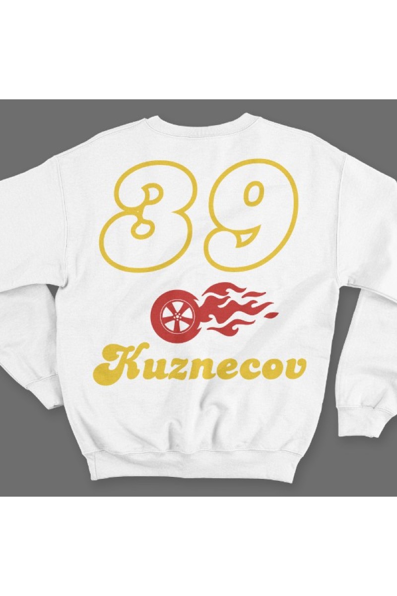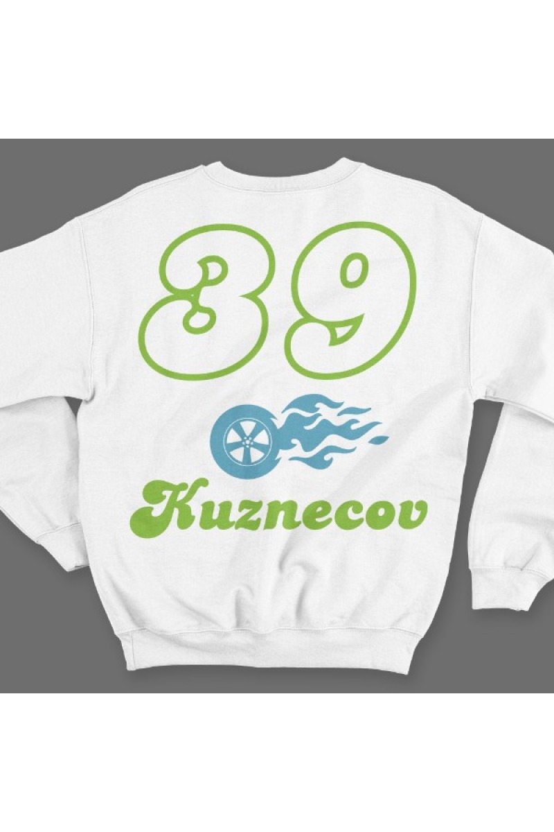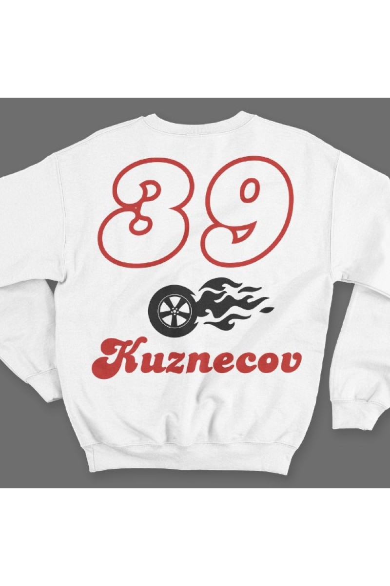 Именной свитшот с шрифтом из нулевых и пламенным колесом #47