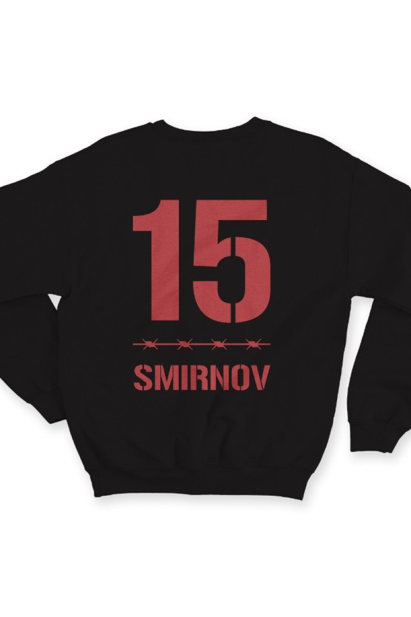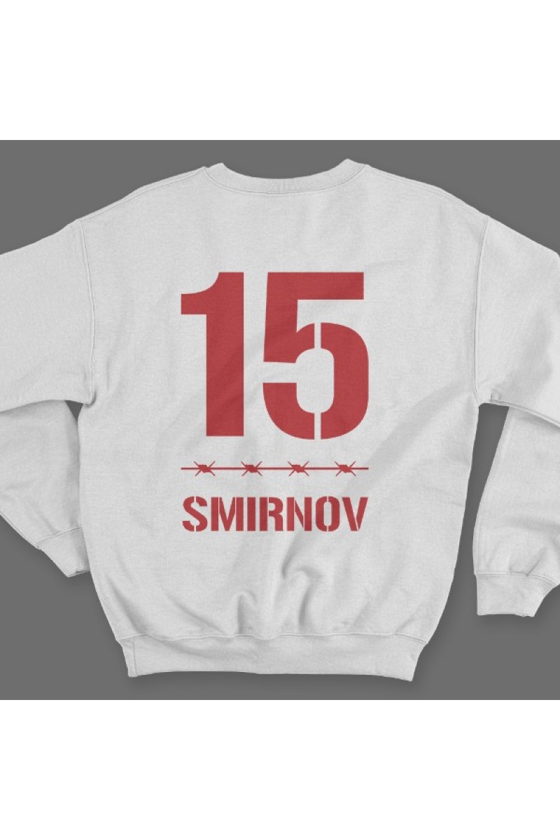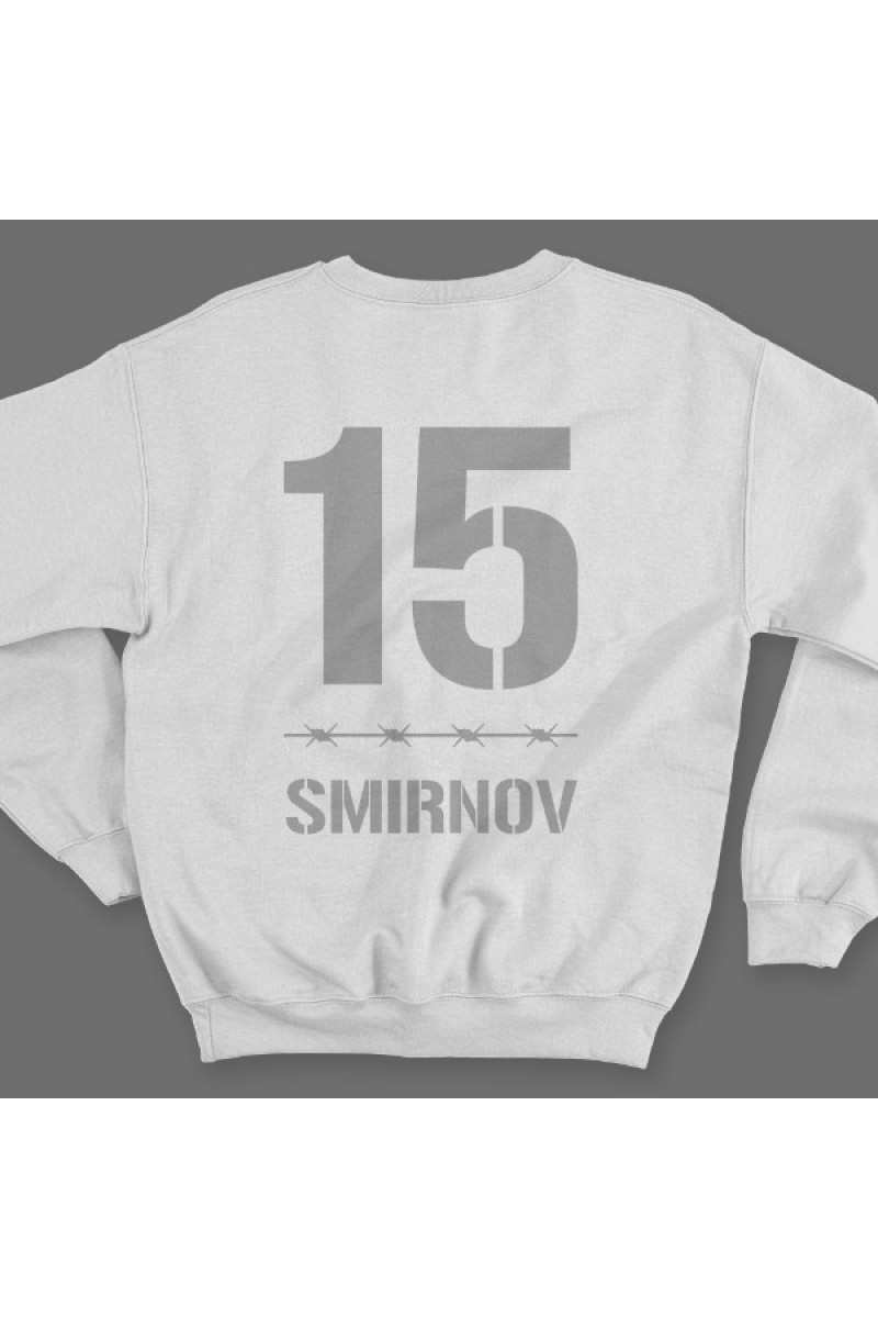 Именной свитшот с тюремным шрифтом. Помимо надписи на свитшоте есть изображение колючей проволоки.
