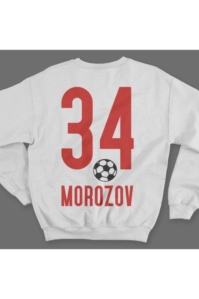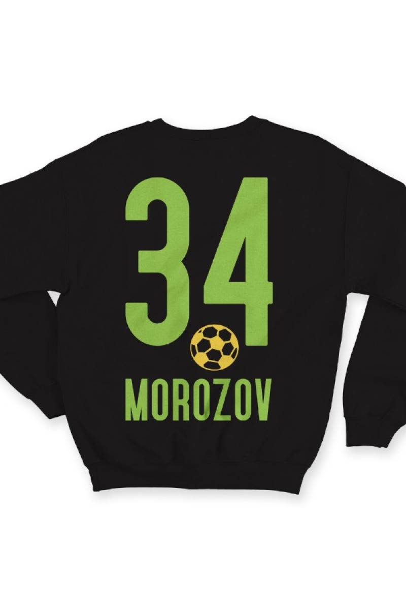 Веселый именной свитшот со спортивным шрифтом. Помимо надписи на свитшоте есть изображение футбольного мяча.