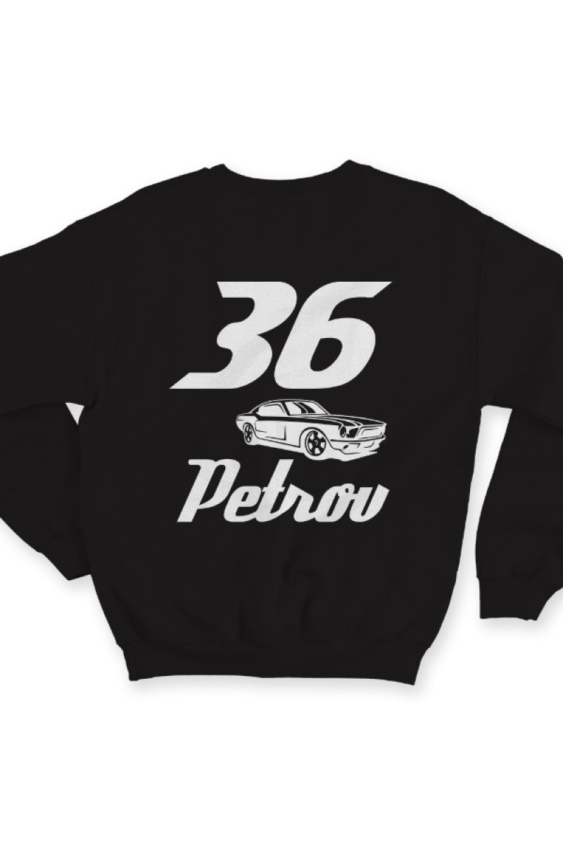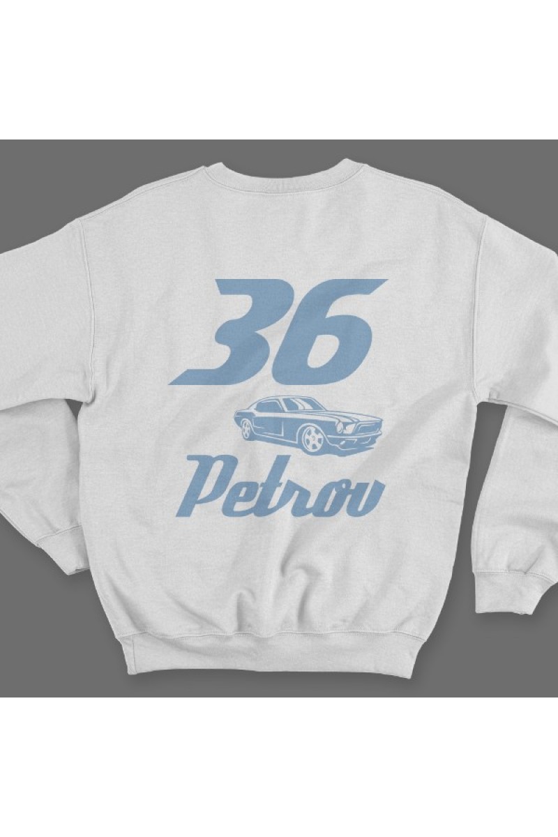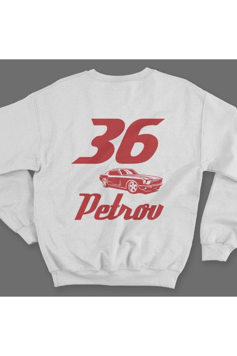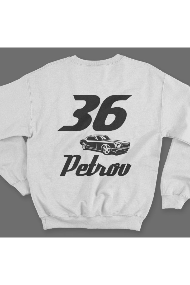 Именной свитшот со спортивным шрифтом и гоночной машиной #5