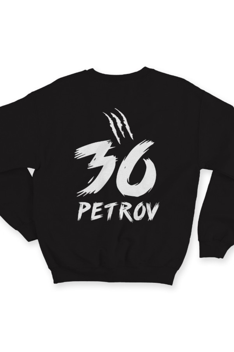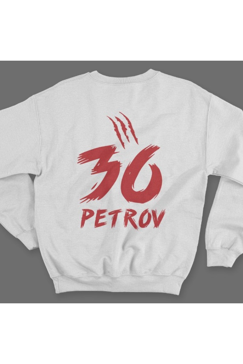 Веселая именной свитшот со страшным шрифтом. Помимо надписи на свитшоте есть изображение следов от когтей.