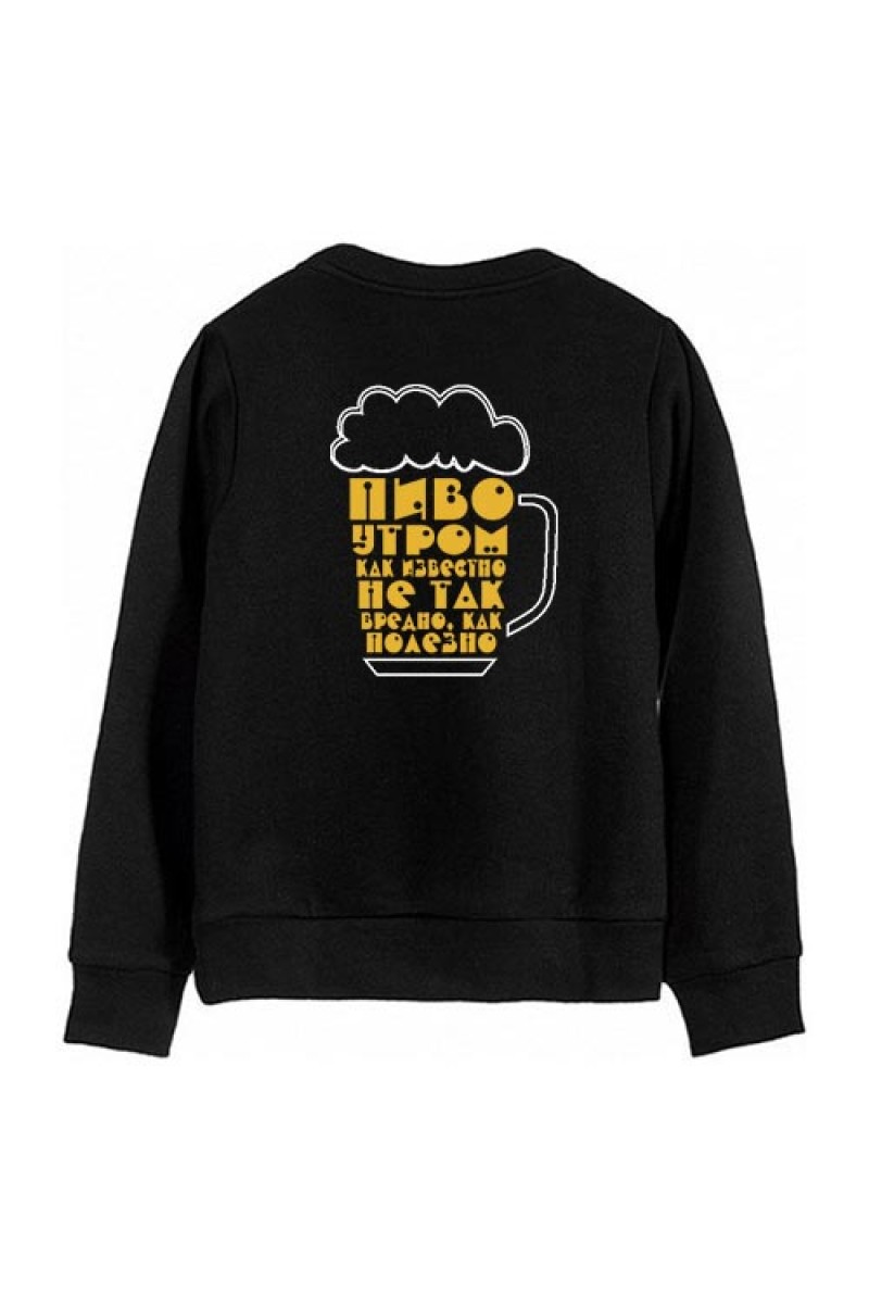 Мужской свитшот "Пиво утром, как известно, не так вредно, как полезно"