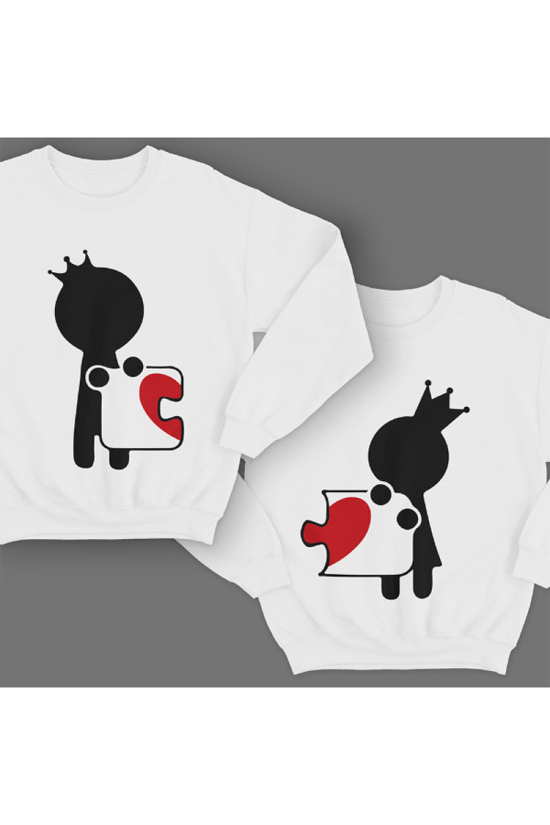 Парный свитшот с принтом "Человечки соединяющие сердце-пазл"