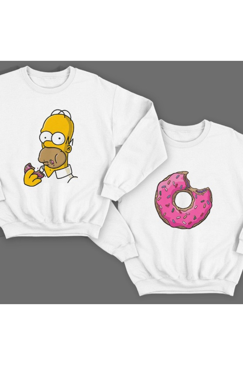 Парный свитшот с изображениями гомера Симпсона и пончика.