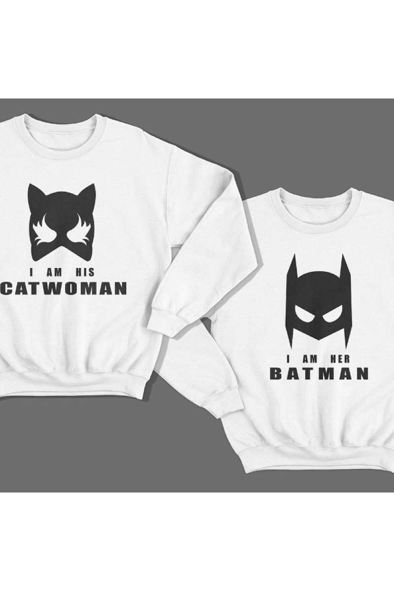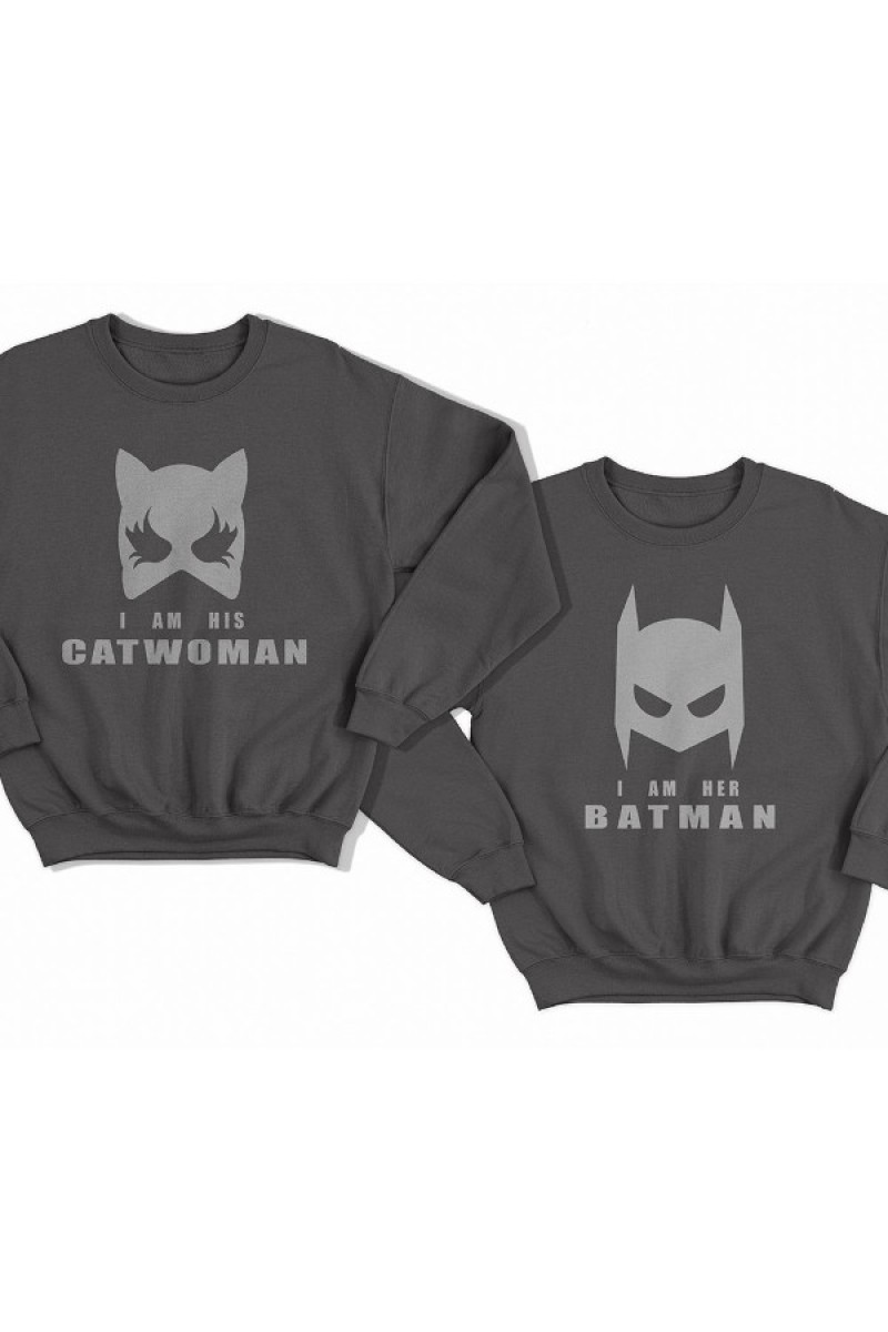 Парный свитшот с принтом "I am his Catwoman (Я его женщина-кошка)"/"I am her Batman (Я ее бэтмен)"