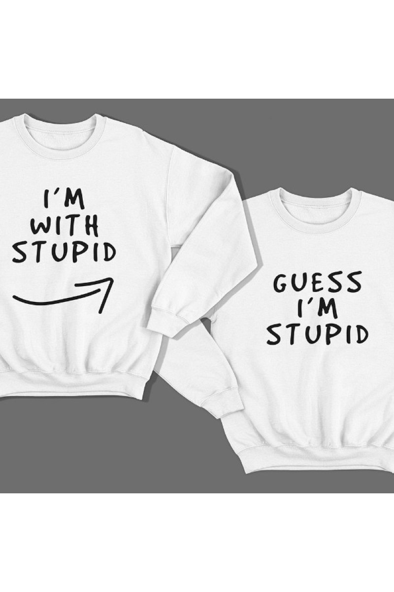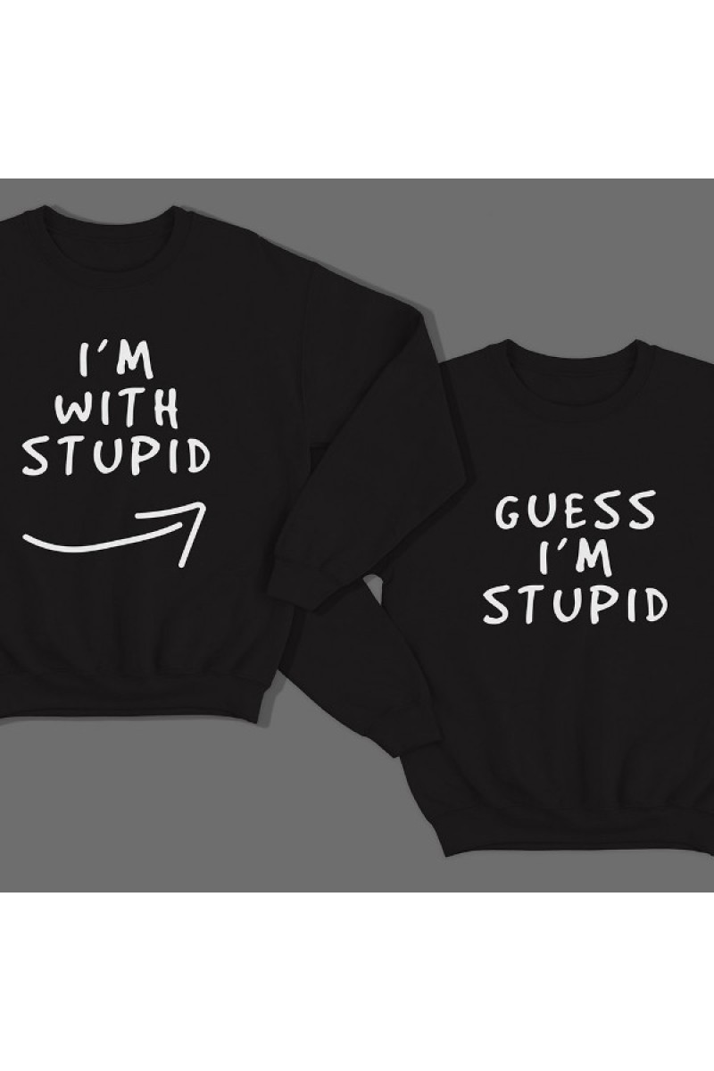 Парный свитшот с надписями "I'm with stupid" и "Guess i'm stupid".