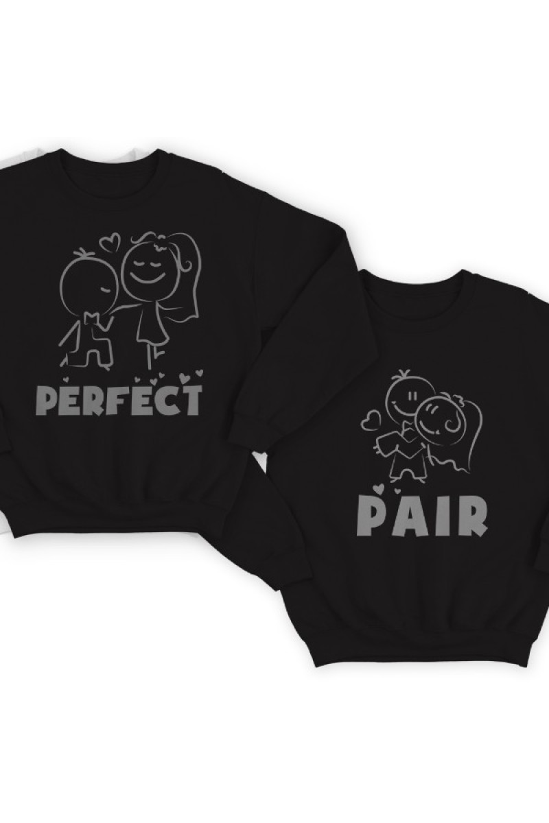 Парный свитшот с изображением влюбленных и надписями "Perfect" и "Pair".