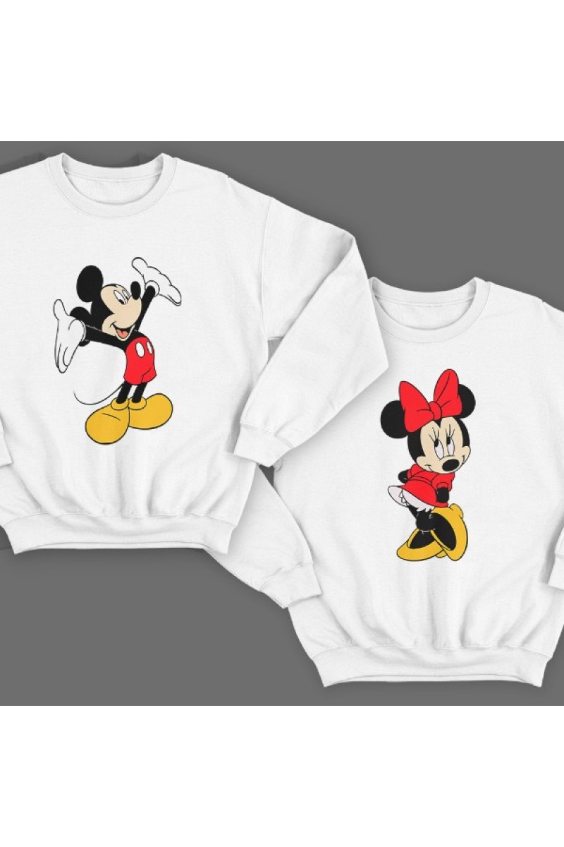 Парные свитшоты для влюбленных с рисунками Микки Мауса и Мини Маус из мультика Mickey Mouse от Disney.