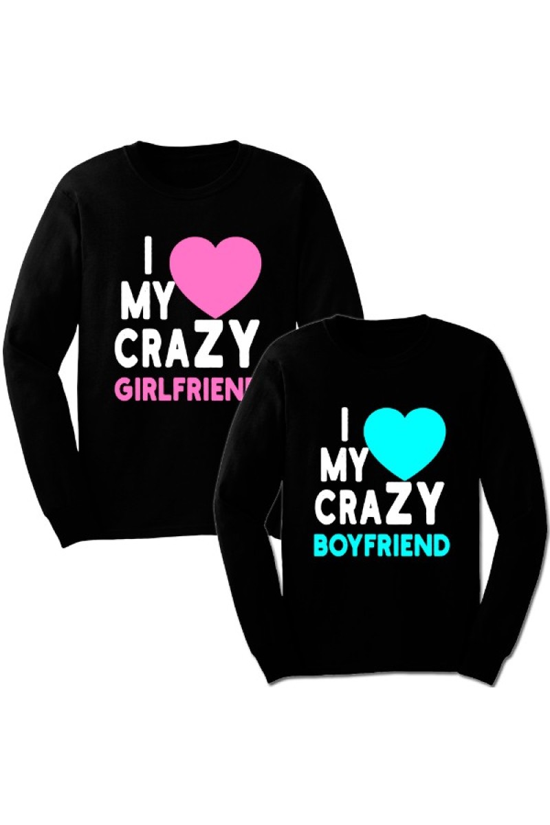 Парные свитшоты с надписью "I love my crazy girlfriend / boyfriend"