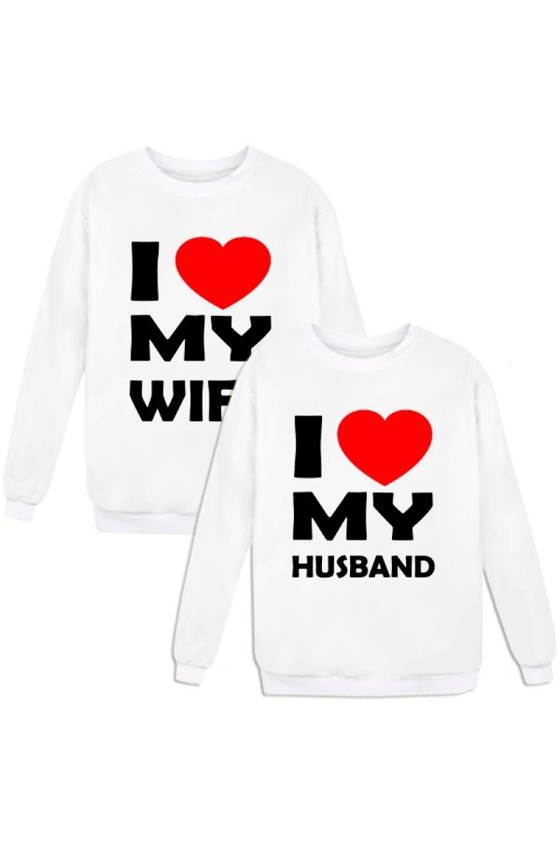 Парные свитшоты с написью "I love my WIFE / HUSBAND"