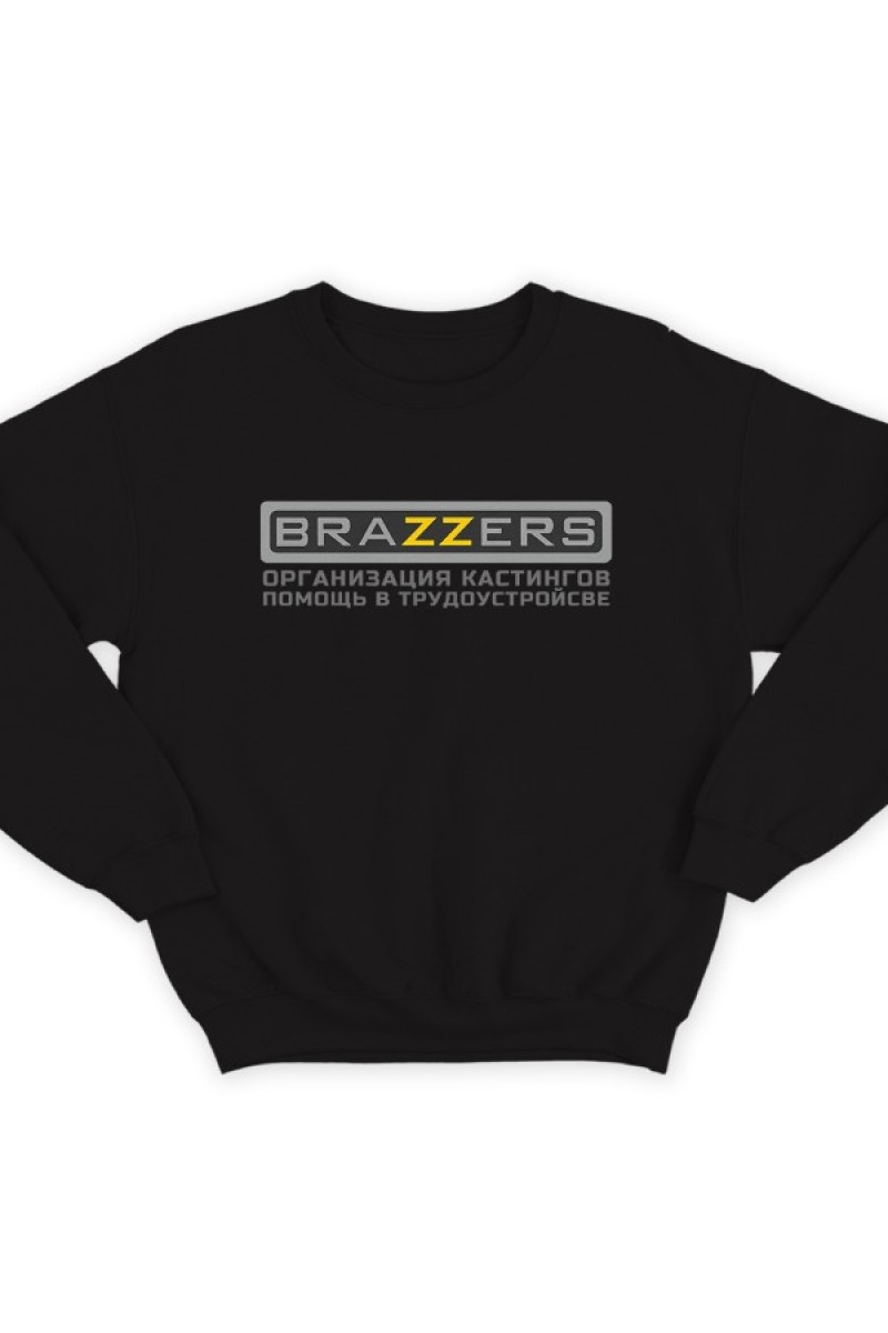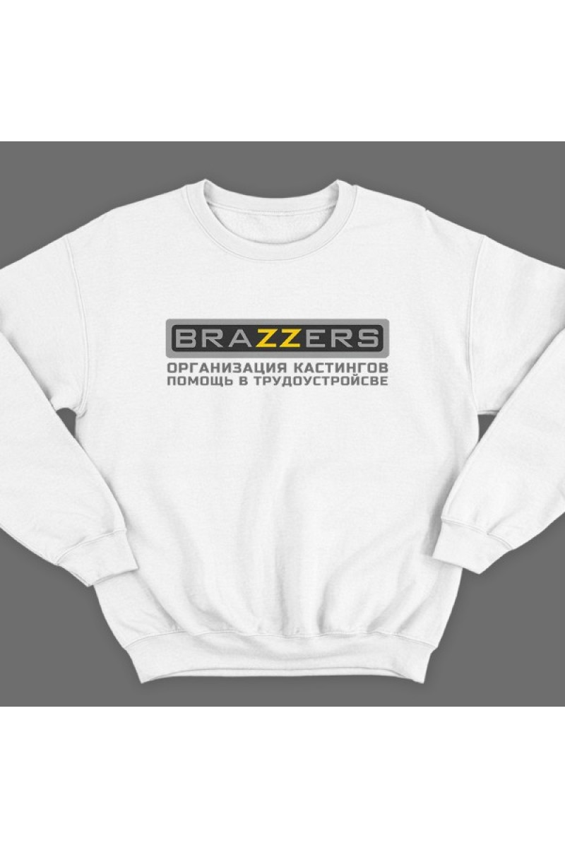Прикольный свитшот с логотипом "Brazzers" и надписью "организация кастингов, помощь в трудоустройстве"