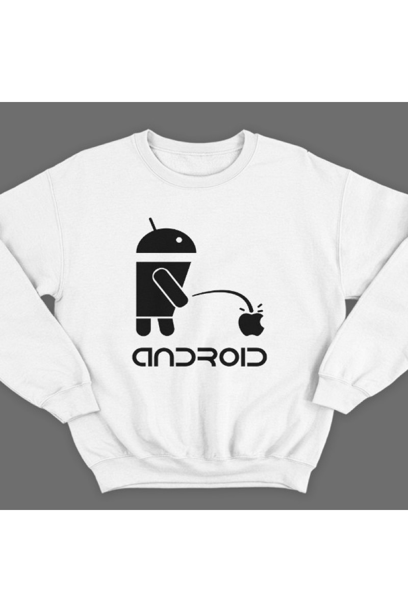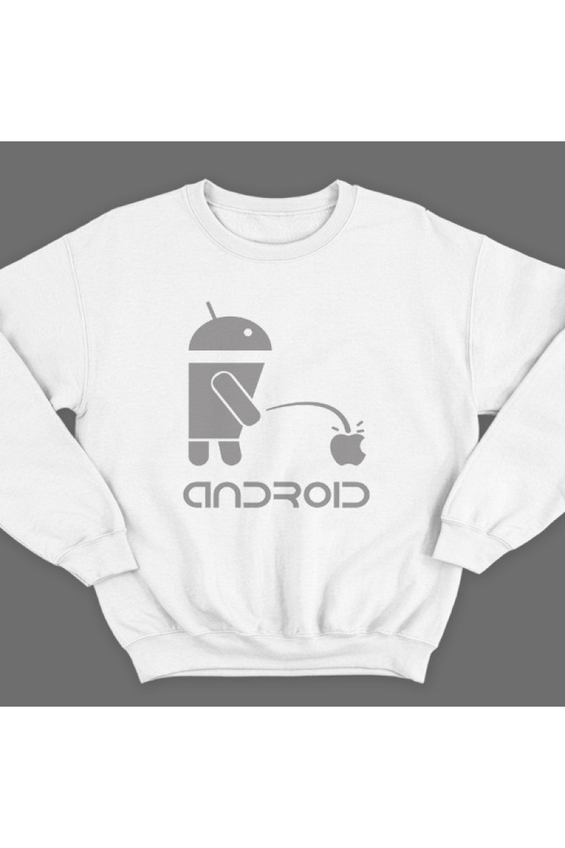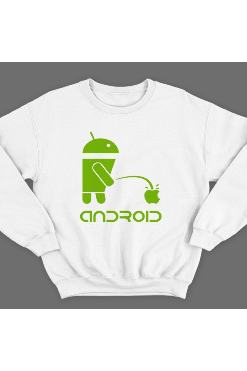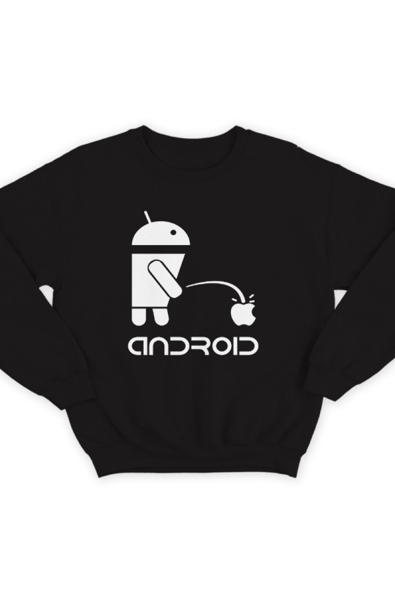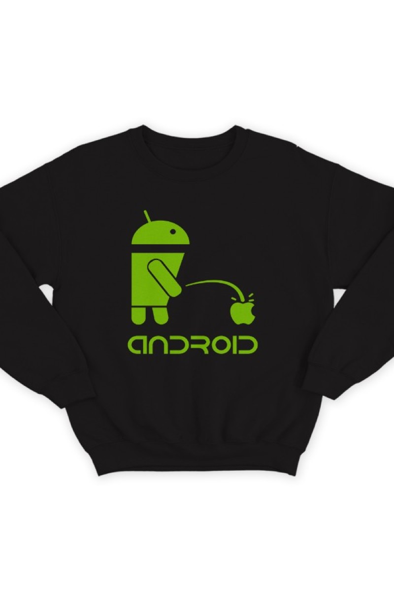 Прикольный свитшот с надписью "Android". На принте логотип ОС "Android" мочится "IOS".