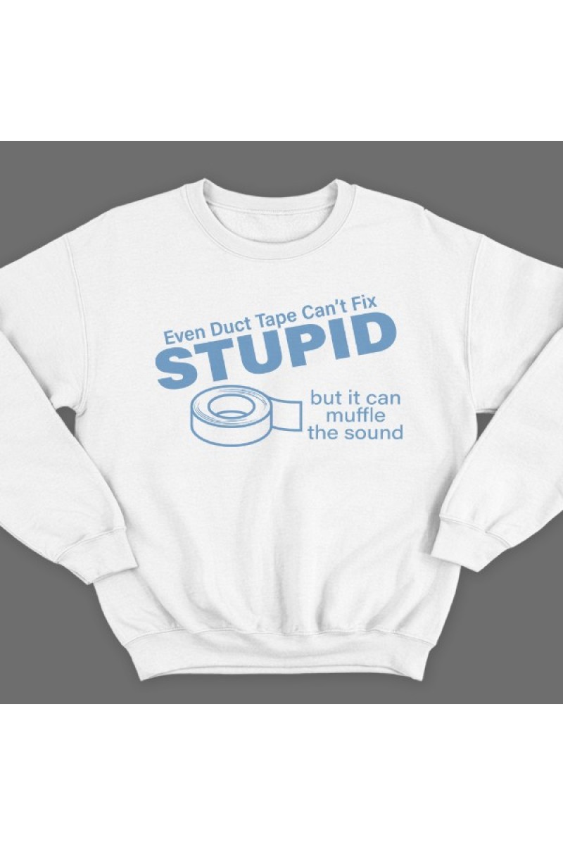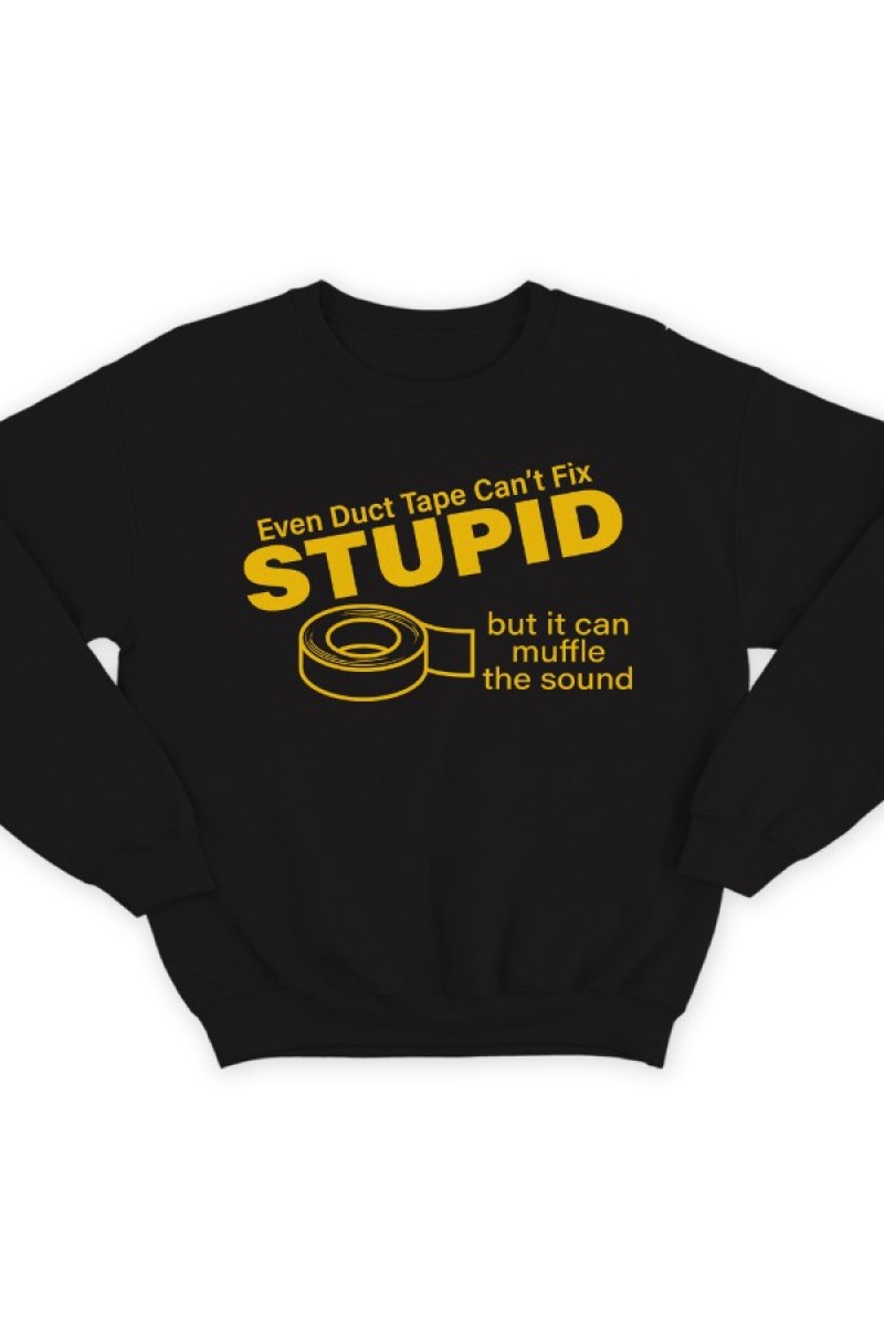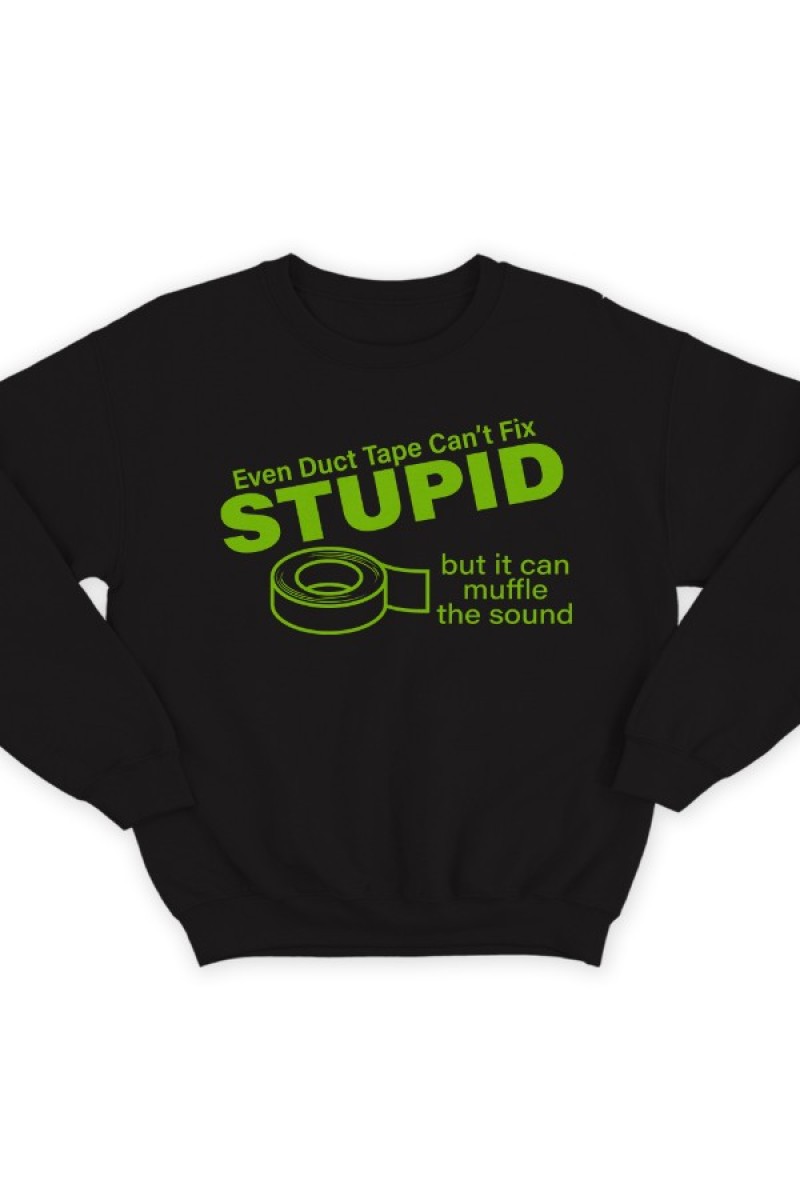 Смешной свитшот с надписью "Even duct tape can't fix stupid, but it can muffle the sound