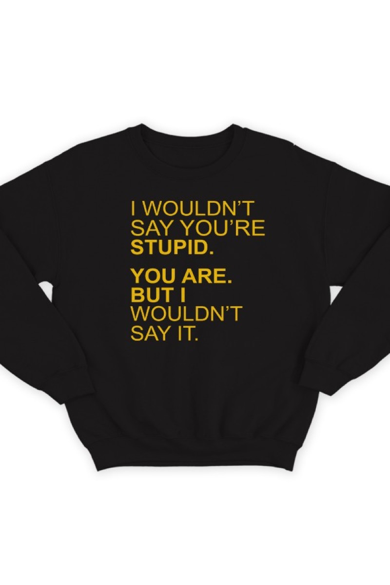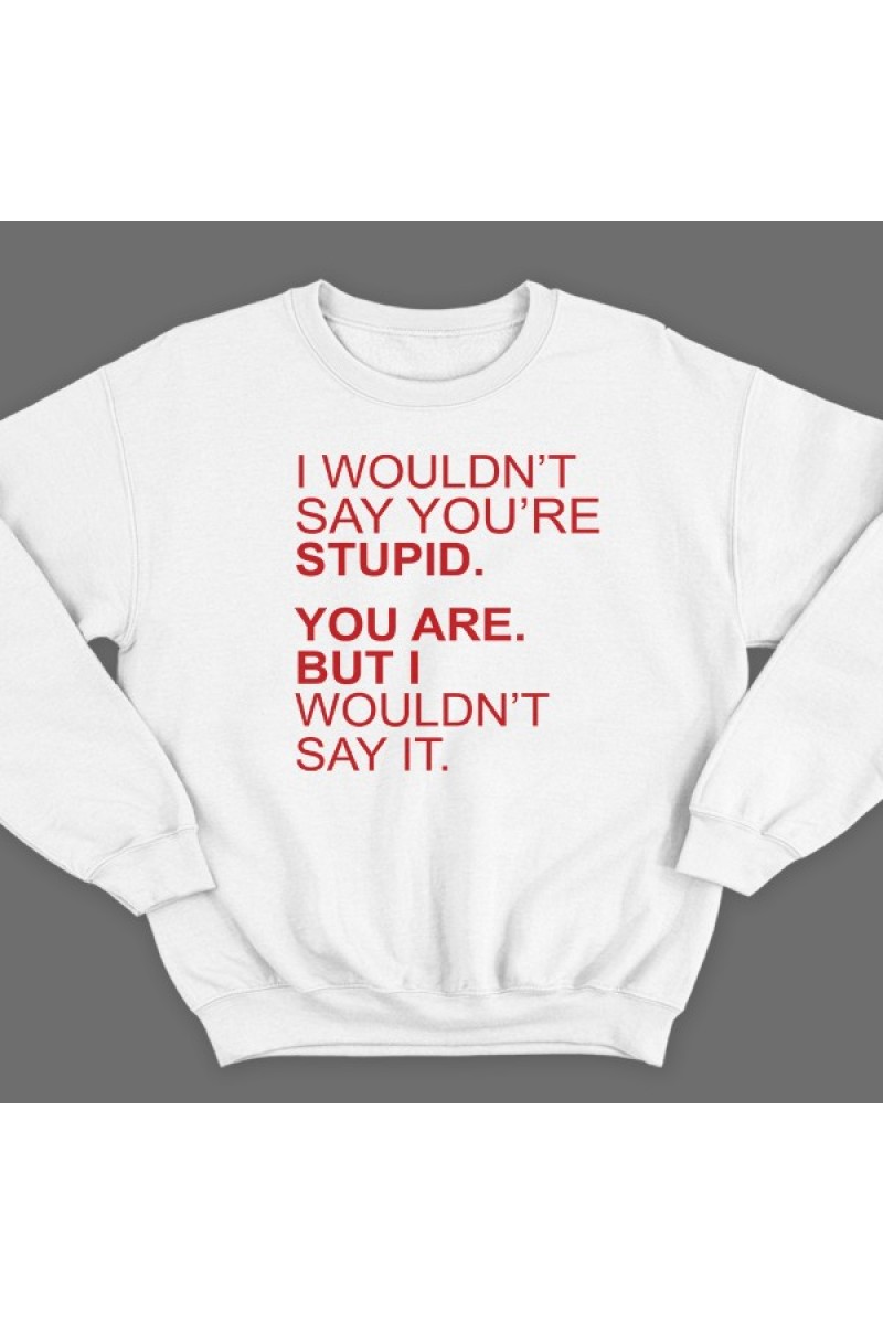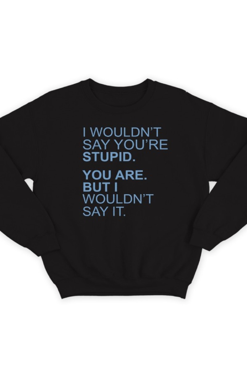 Смешной свитшот с надписью "I wouldn't say you're stupid. You are. But i wouldn't say it."