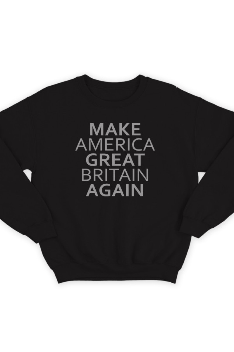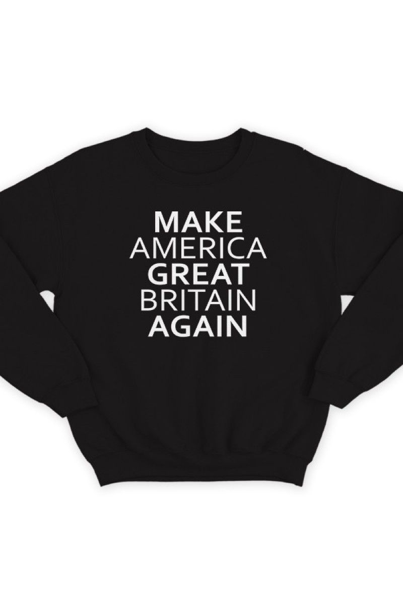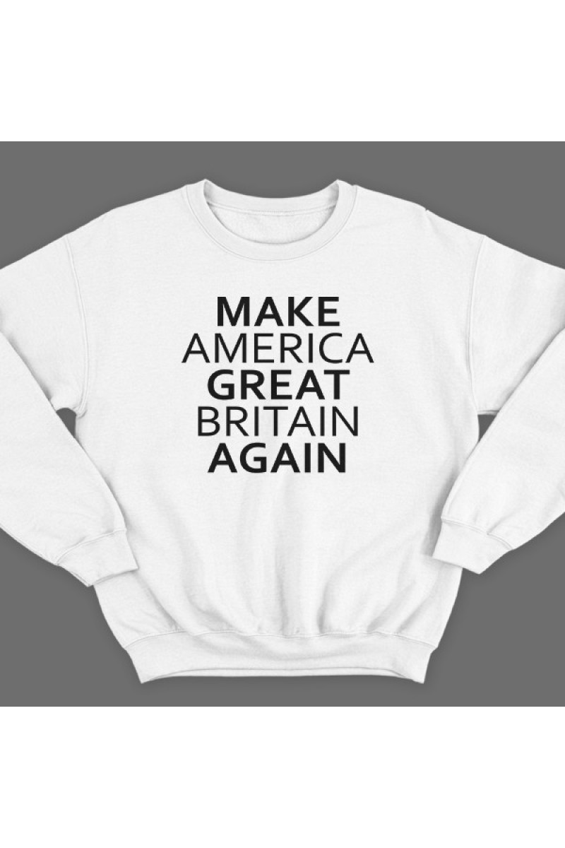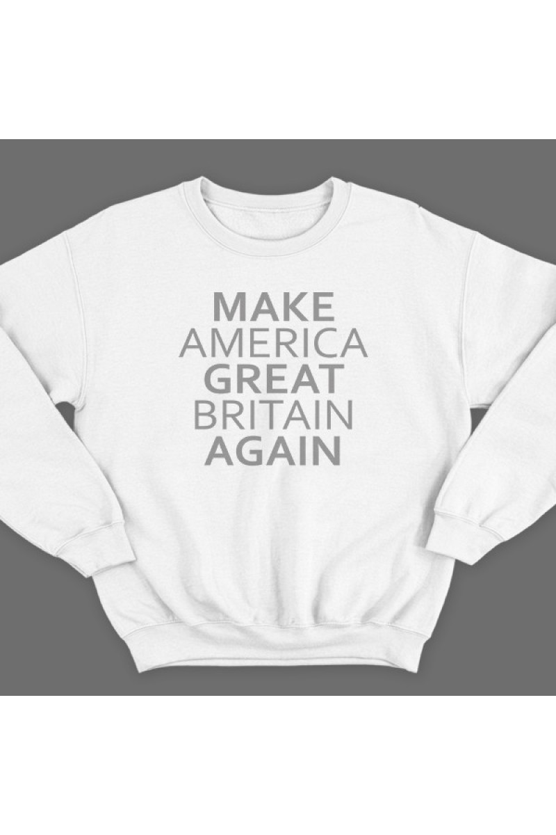 Прикольный свитшот с надписью "Make America Great Britain Again" - Сделай Америку Великой Британией снова.