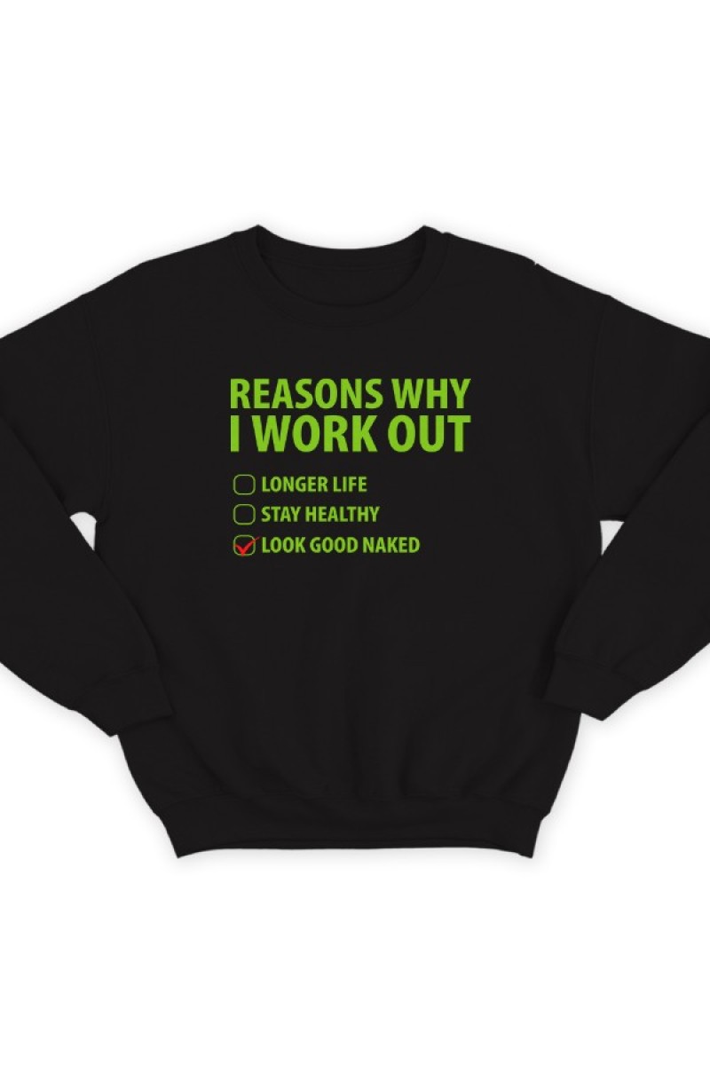 Смешной свитшот с надписью "Reasons why i workout"