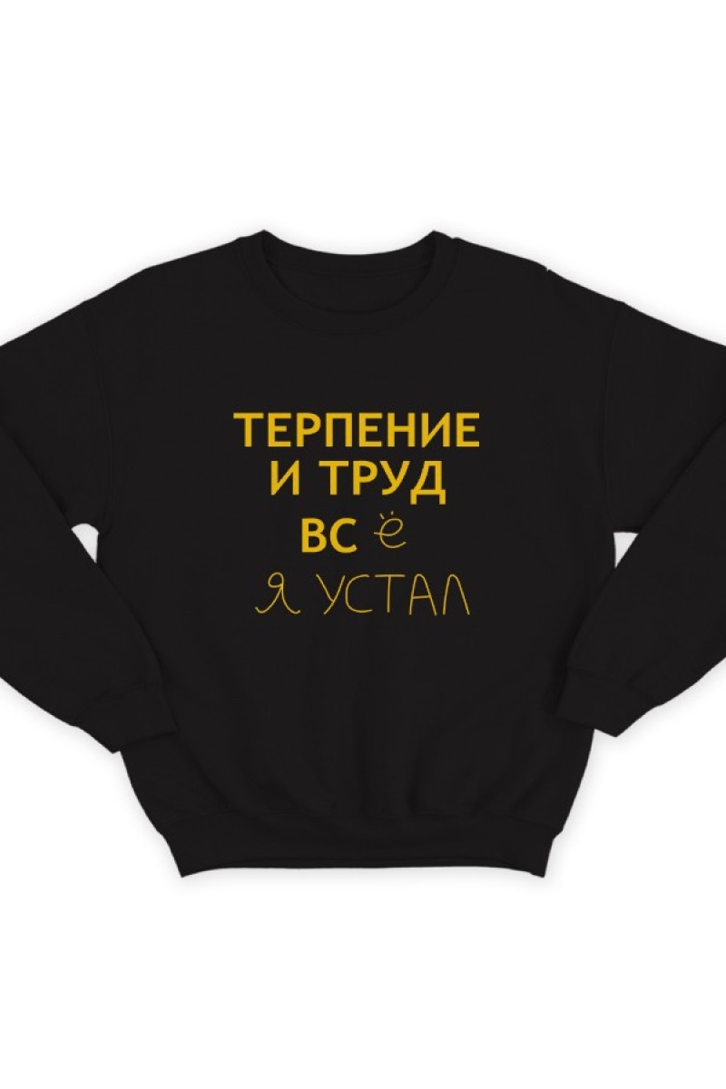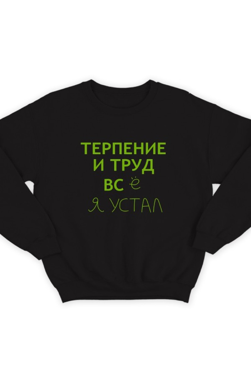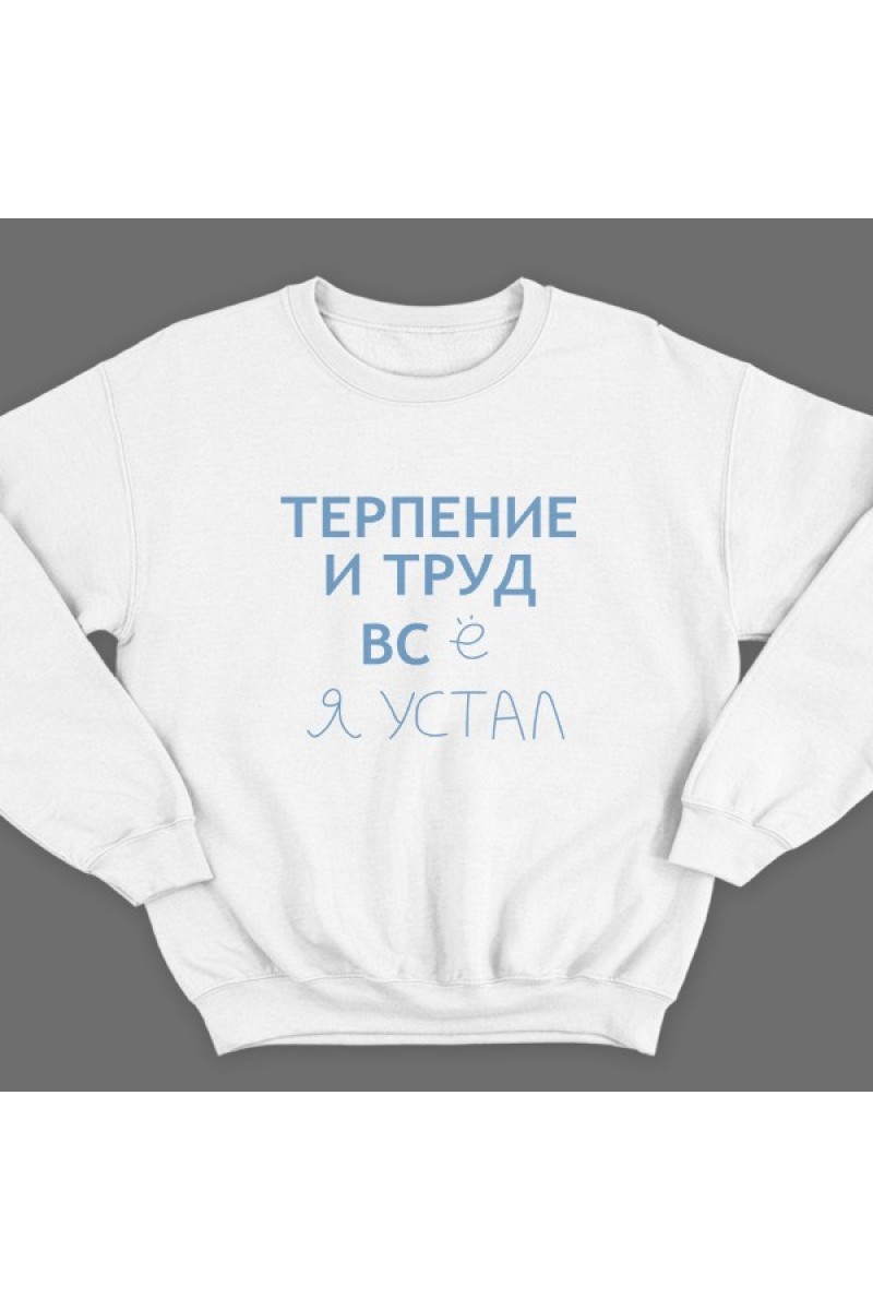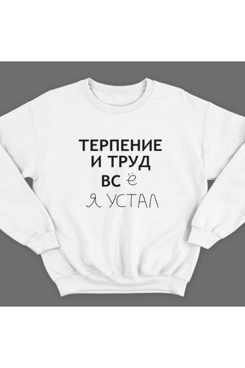 Прикольный свитшот с надписью "Терпение и труд всё я устал"