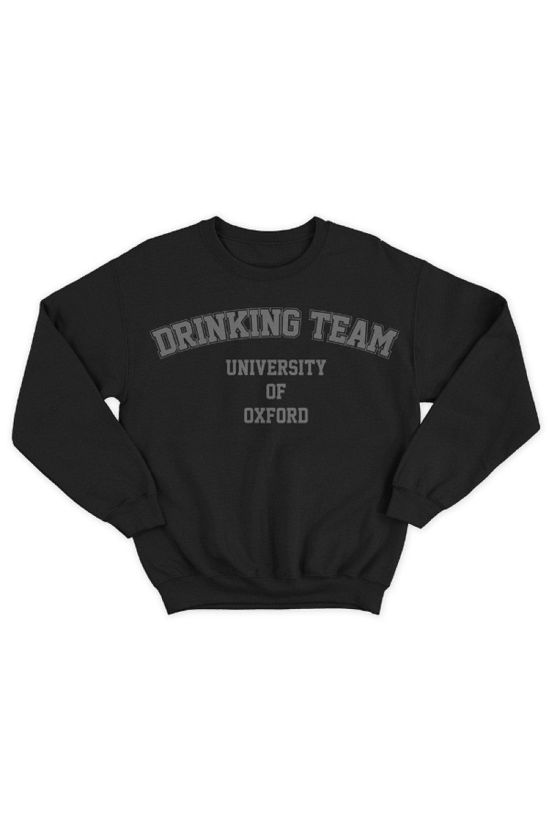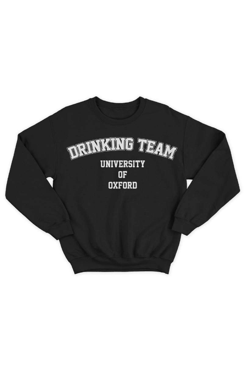 Прикольный свитшот с надписью "University Of Oxford DRINKING TEAM" в стилистике эксклюзивной одежды американских университетов.
