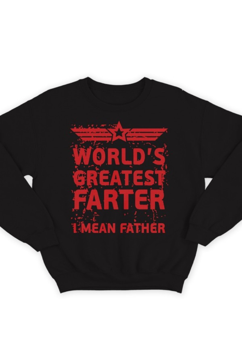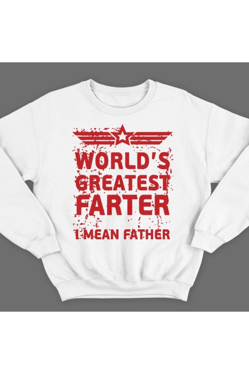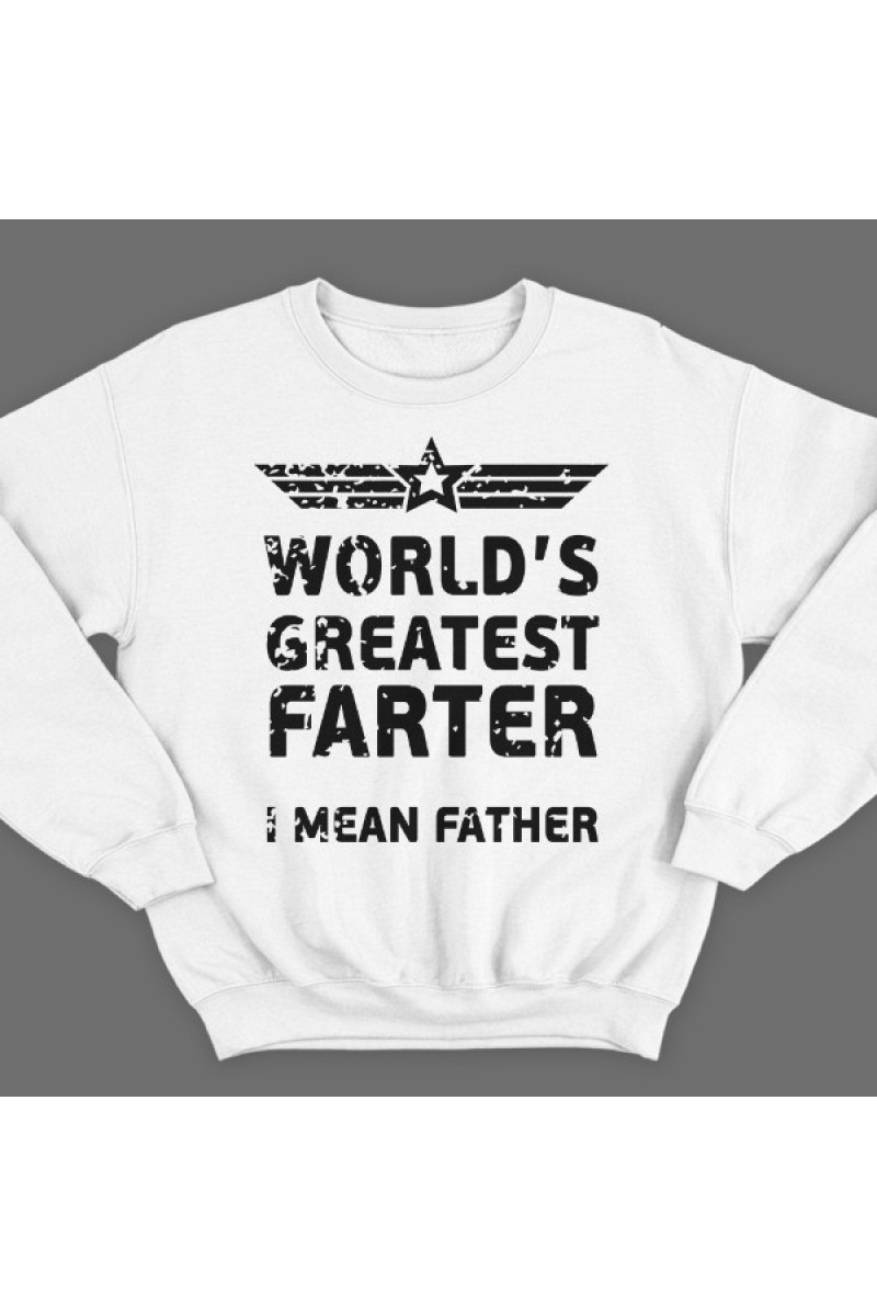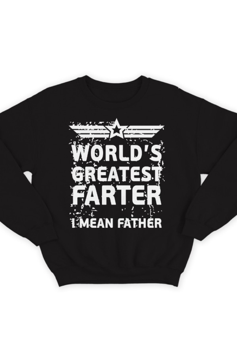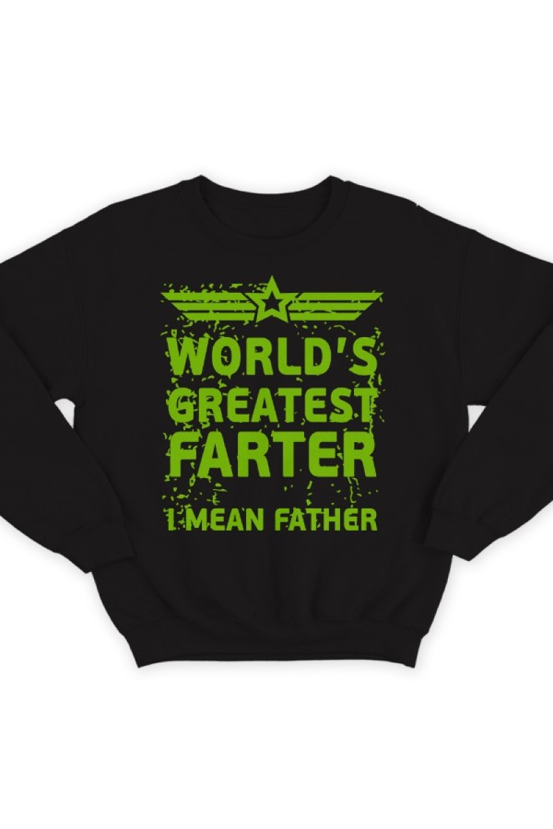 Прикольный свитшот с надписью "World's greatest farter. I mean father" ("Лучший в мире пердун, я хотел сказать отец")