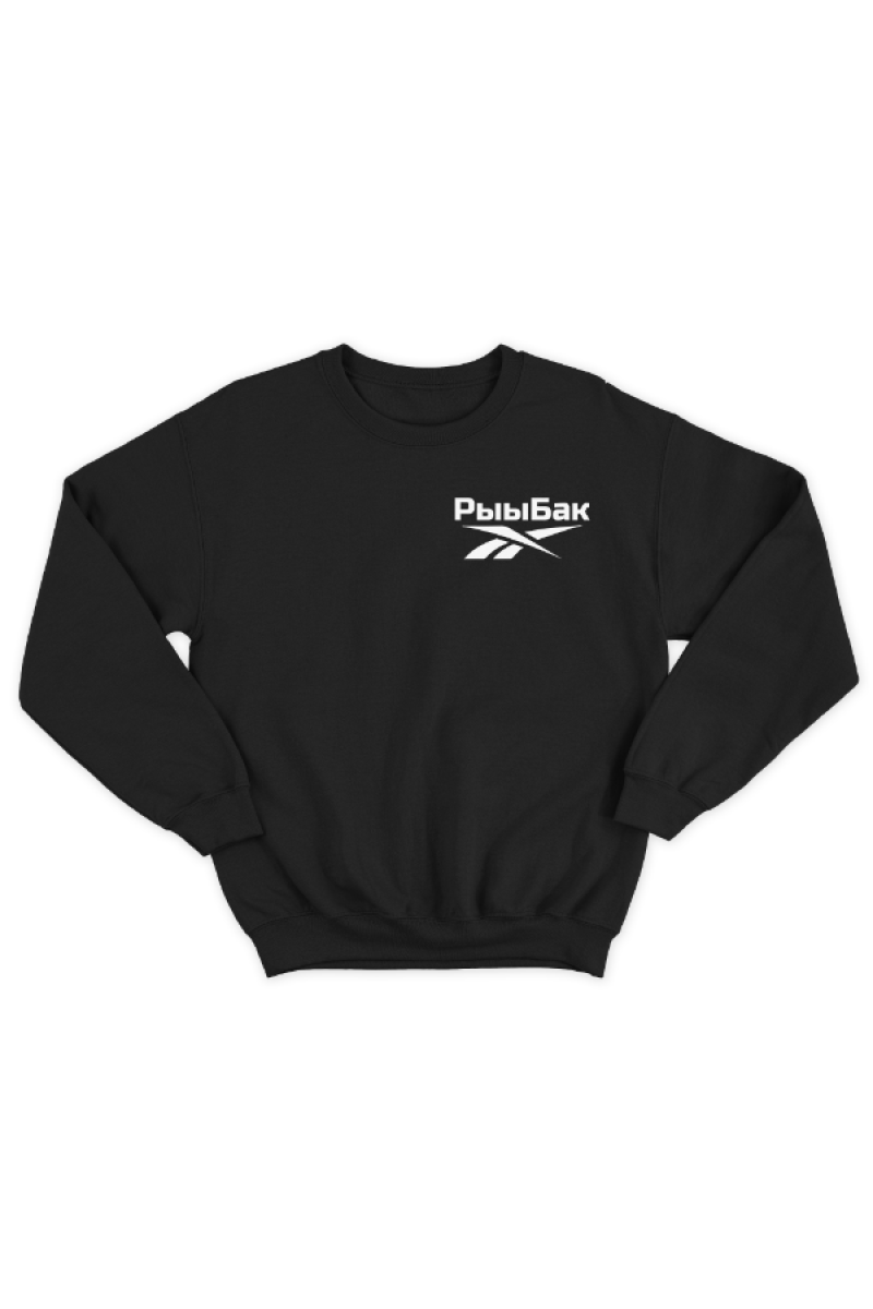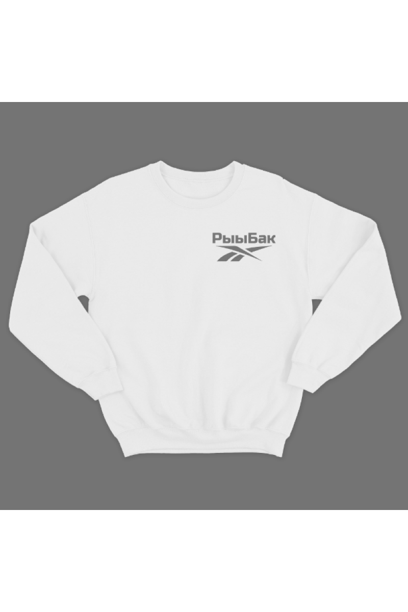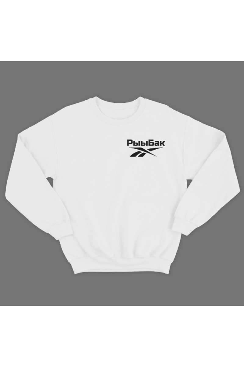 Прикольный свитшот с маленькой надписью "Рыыбак" - отсылка к логотипу фирмы Reebok.
