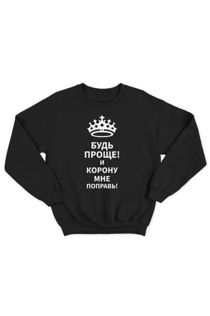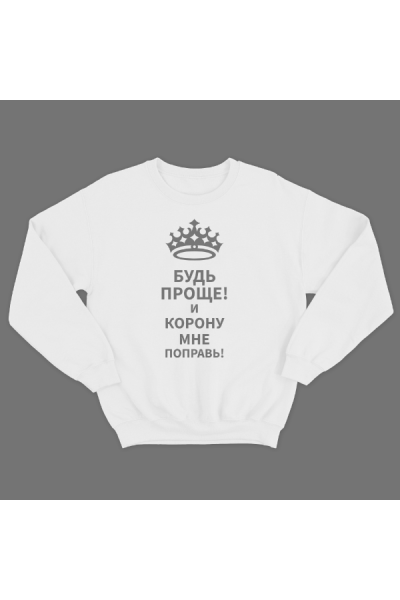 Прикольный свитшот с принтом "Будь проще! и корону мне поправь".