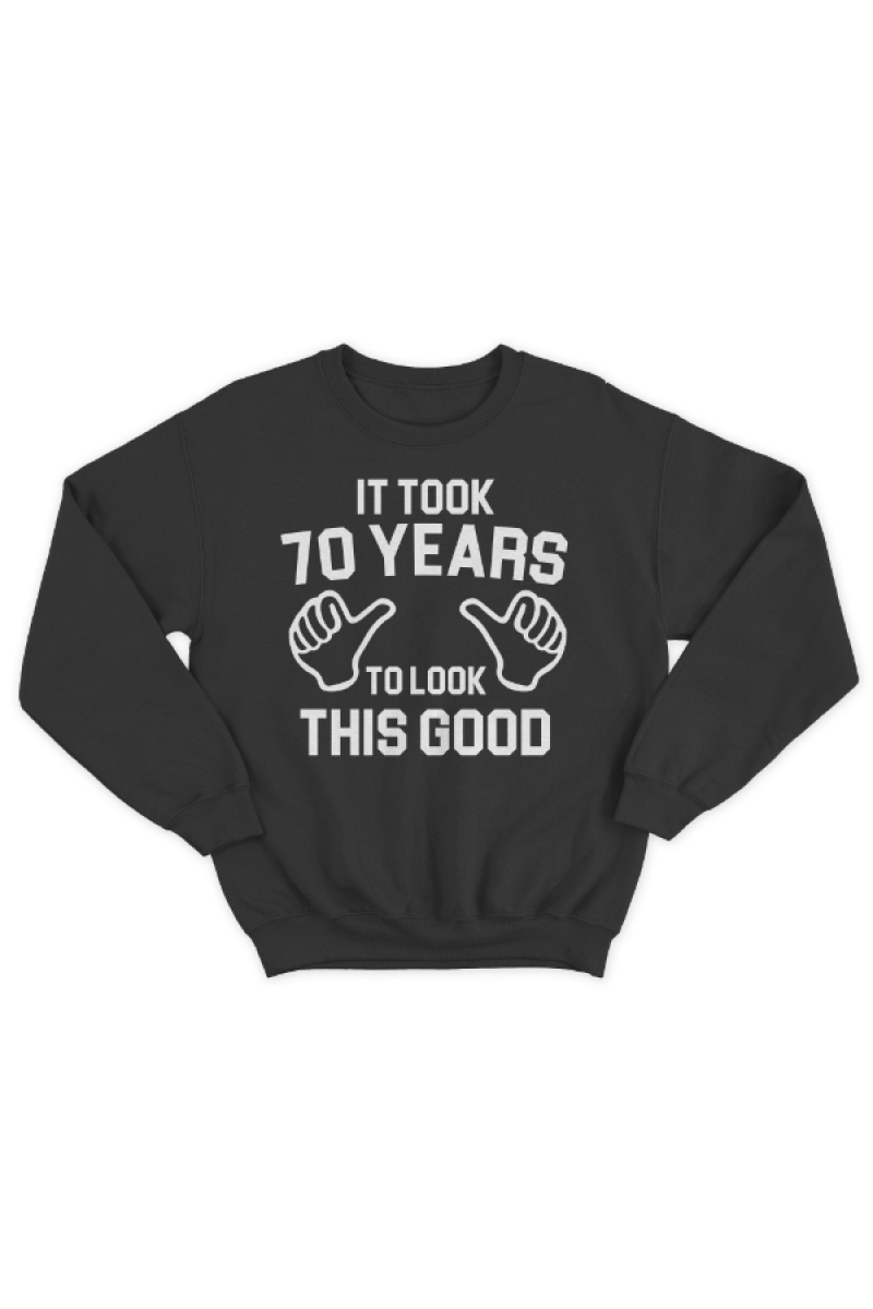 Прикольный свитшот с надписью "It took 70 years to look this good"