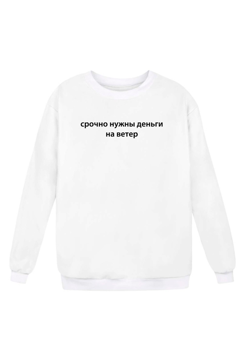 Прикольный свитшот с надписью "Срочно нужны деньги на ветер"